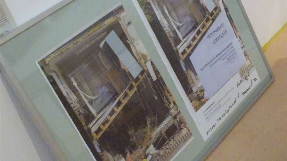 Die Energie in den Räumen des Frauenmuseums ist besonders. Eine Videodokumentation über die Flut hallt leise durch die Atmosphäre und man wird berührt. Neben der Verarbeitung der Katastrophe haben die Künstlerinnen auch eigene Werke ausgestellt, die von besonderer emotionaler Strahlkraft sind.