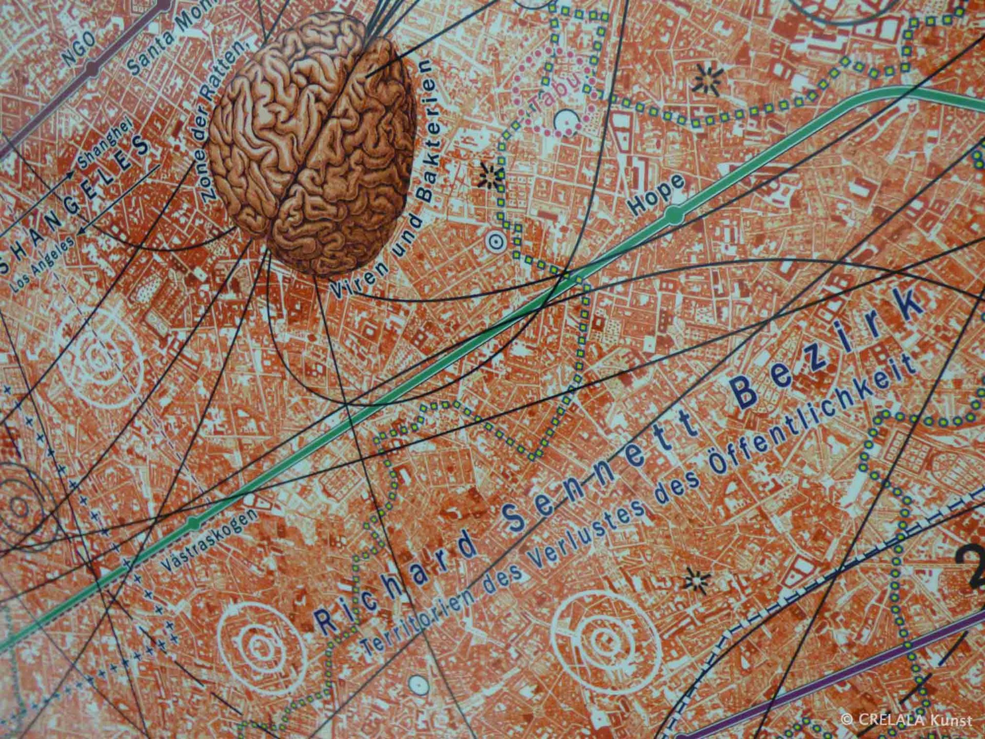 Die an Raumdaten gekoppelten immersiven Kunstwerke sind ein spannendes Erlebnis. Was aber, wenn die im Raum verankerten Pixelpakete aus ihrer Position herausprogrammiert oder eliminiert werden, und was, wenn sie dann mit anderen Raumdaten beginnen zu interagieren und die smarten Systeme beschleunigt werden? Um nicht zu viel zu verraten ist es empfehlenswert die Ausstellung im Kunstmuseum selbst zu besuchen und auch die ständige Sammlung nicht unbeachtet zu lassen. Hier werden Kartenwerke gezeigt, wo man vielleicht schon weitergedacht hat. Inklusive der Vorstellung der fragmentierten Wahrnehmung.