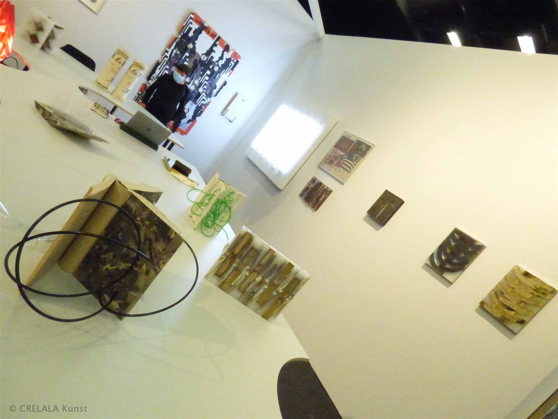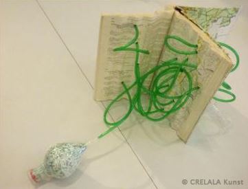 Auf einem Handout von HUA International als Teil der „collaboration section“ findet man die Beschreibung von dem, was man präsentiert sieht. Es geht dem in Cuba, Havanna, geborenen Domenech offensichtlich mehr um die Bücher auf dem Tisch, als um den Tisch selbst. Bücher. Objekte. Seltene Buchobjekte, die es nicht in die Massenproduktion und auf Bestsellerlisten geschafft haben, sondern im alternativen Raum „verschwinden“. Der Tisch wird dann zum Synonym für das Eintauchen in Bücher. Eine „Horizontale Publikation“! Die Platte trägt das Wissen. Die einzelnen Bücher mit Bedeutung, wie einzelne Seiten einer größeren Gesamtausgabe.