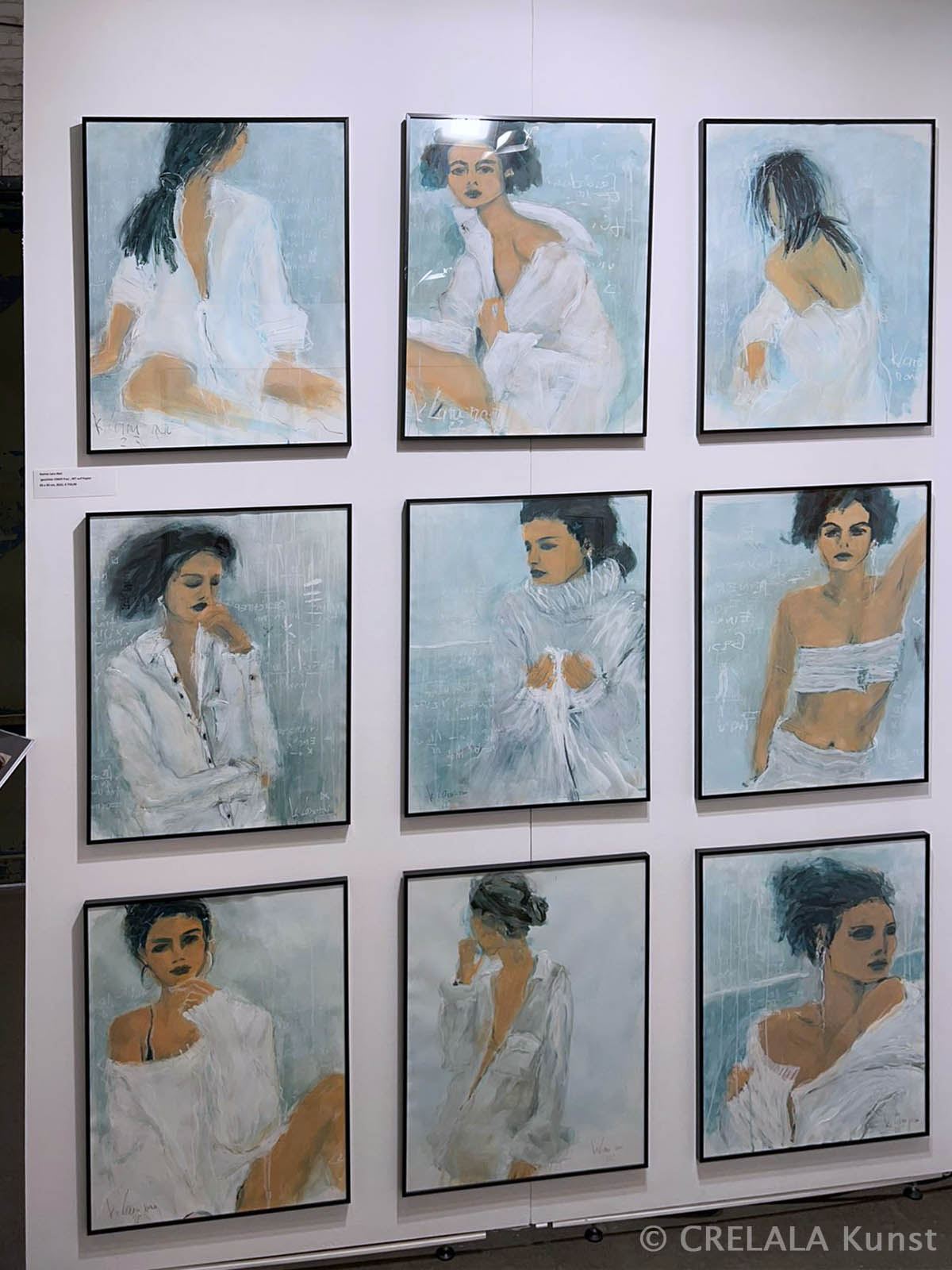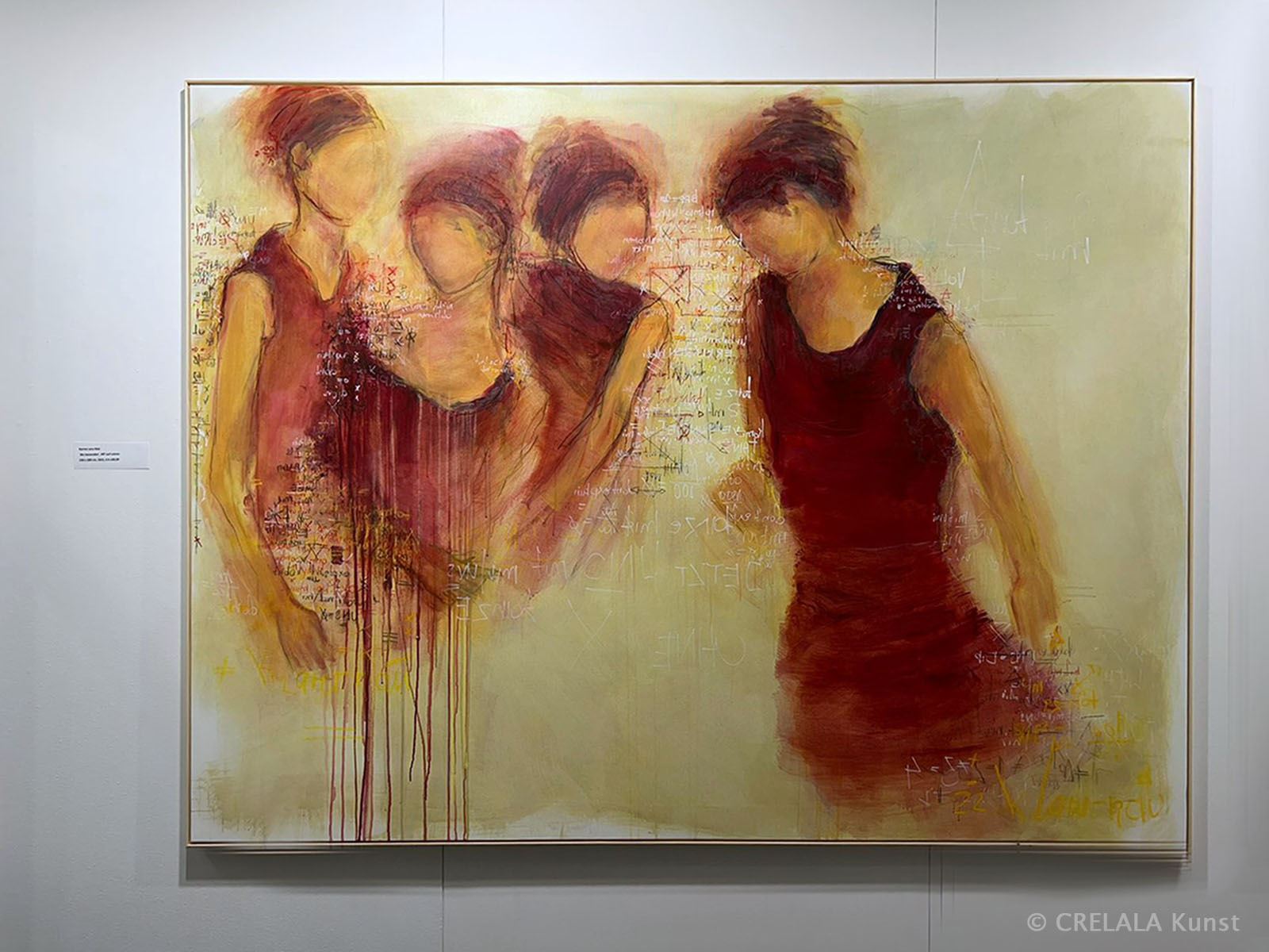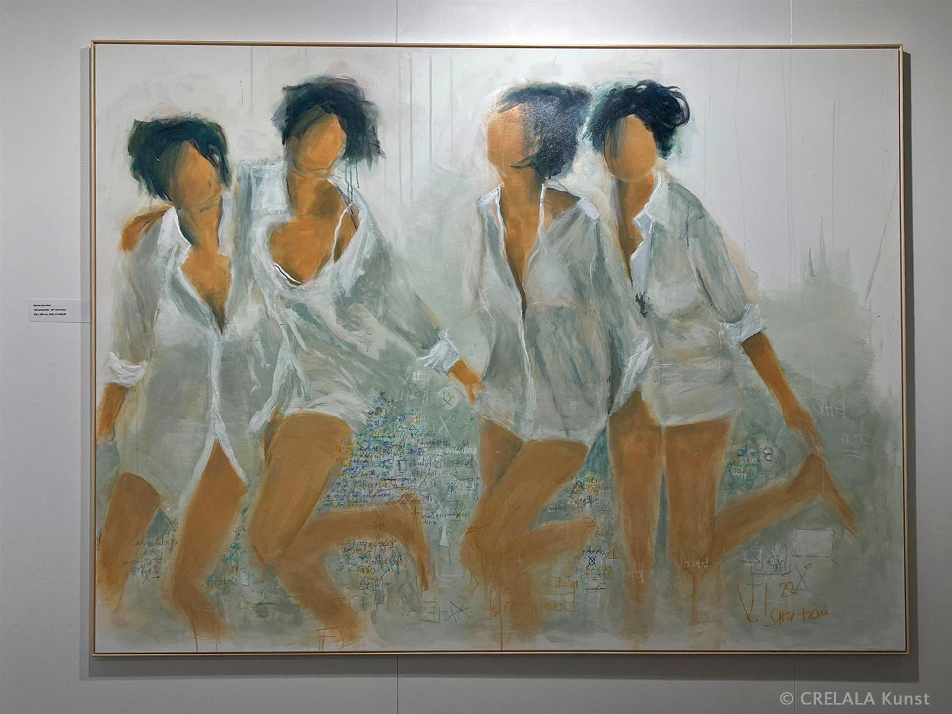 Und was sie malt, das kann auch der Betrachter fühlen. In der jüngsten Serie sind es Schemen ohne Gesicht. Gestalten einer tiefgreifenden Schönheit! - Idealisierte Schönheiten. Reproduzierbar, da ohne persönliche Note. Wunschfiguren, denen man verfällt, sobald man sie erblickt. Der sooft beschriebene Flow setzt ein, ein Sog, der in die Tiefe des Bildes mitzureißen droht.