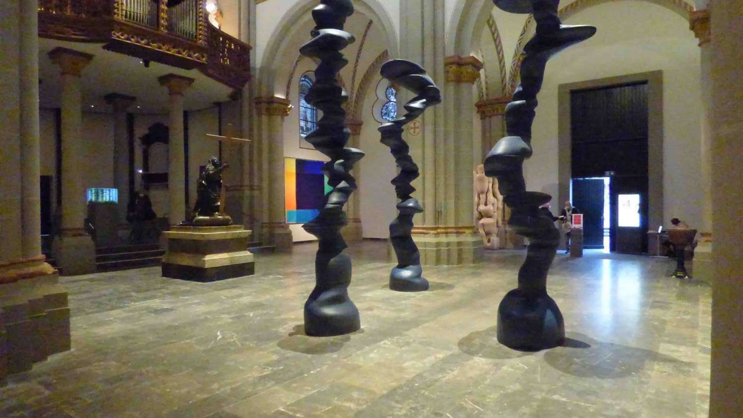 So wird es wahrscheinlich auch den Besuchern der Bonner Münsterbasilika ergehen, wenn sie aktuell den Sakralbau betreten, in dem vor allem Anthony Craggs Werke wie ein Stilbruch mit der sakralen Kunst wirken und sich doch symbolisch einfügen und einen magischen Moment heraufbeschwören.