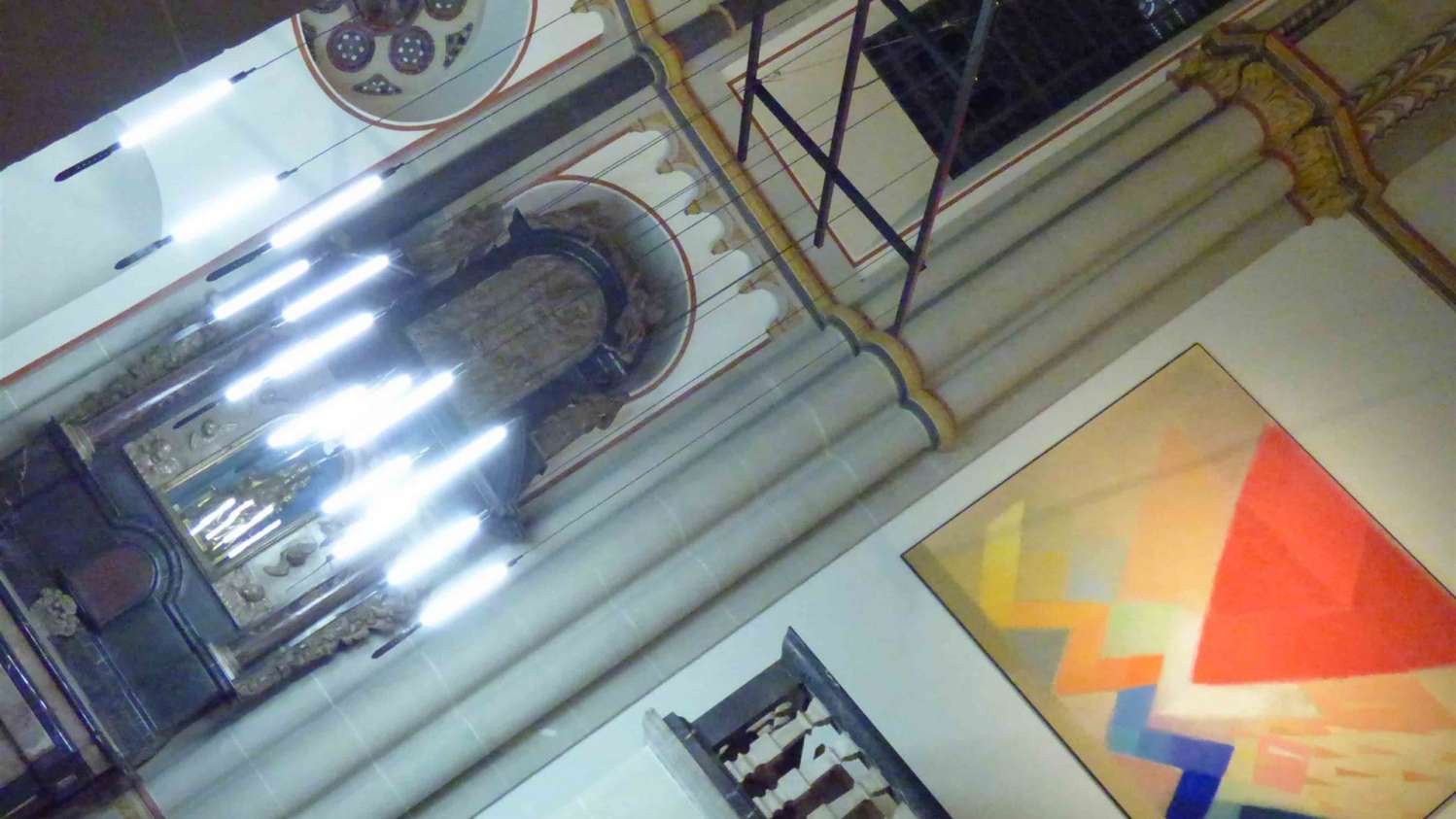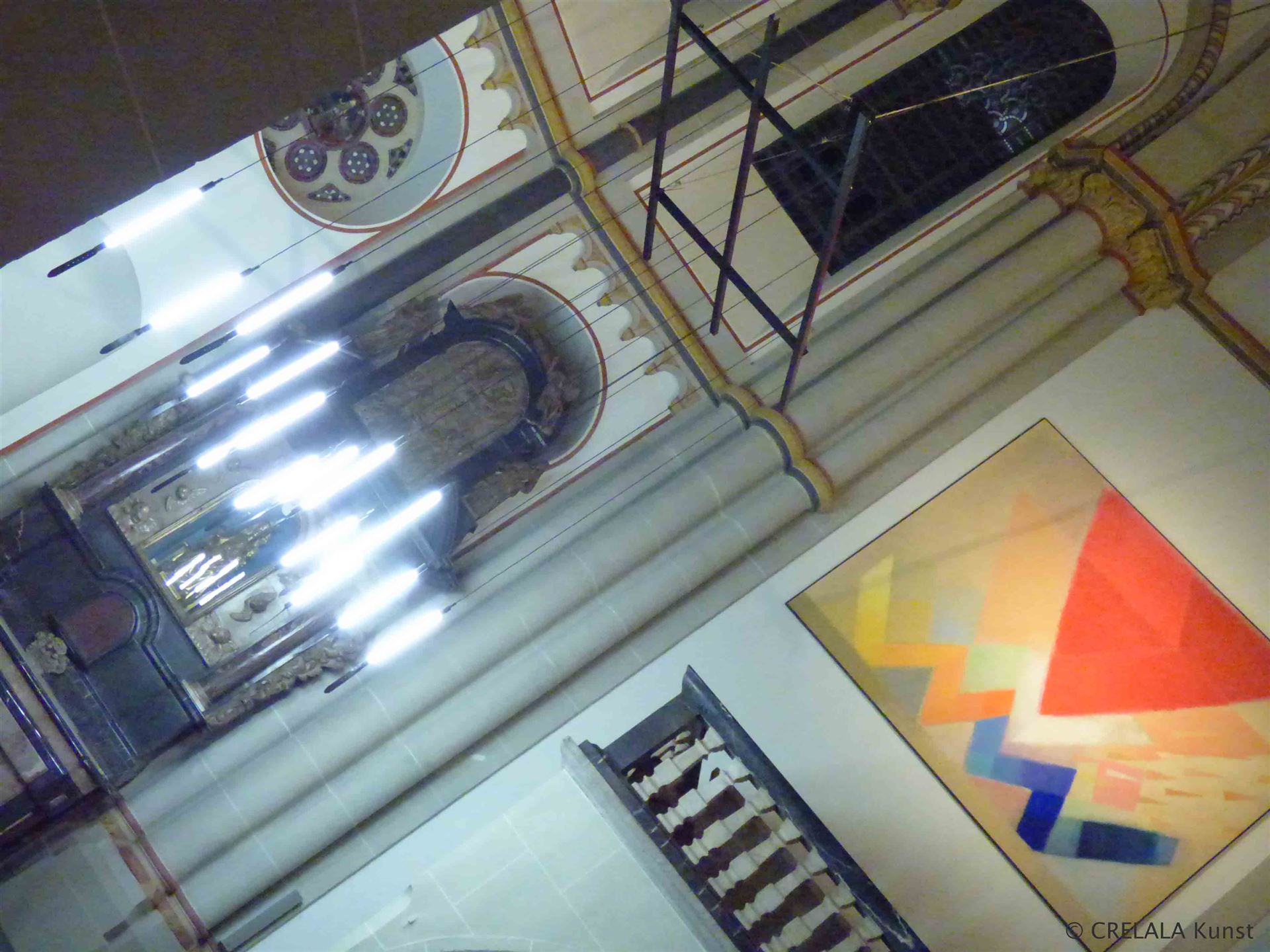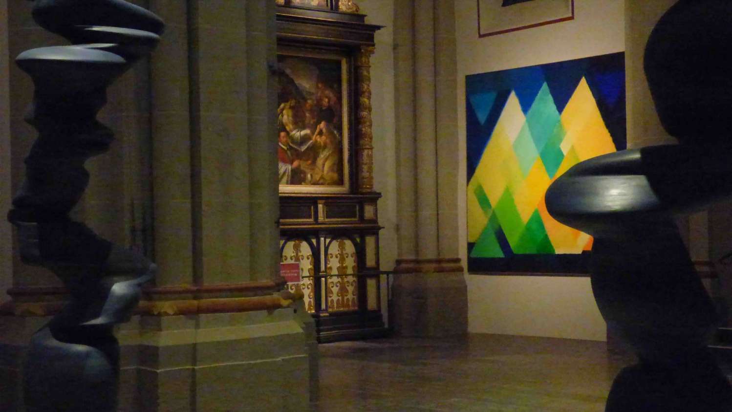 Heinz Macks leuchtende Farben durchbrechen die Düsternis des Langhauses der Basilika und man ist zu gut neudeutsch „geflasht“ vom Zusammenspiel religiöser und moderner Kunst und verfällt einer mystischen Stimmung in dem wiederhallenden Sakralbau.