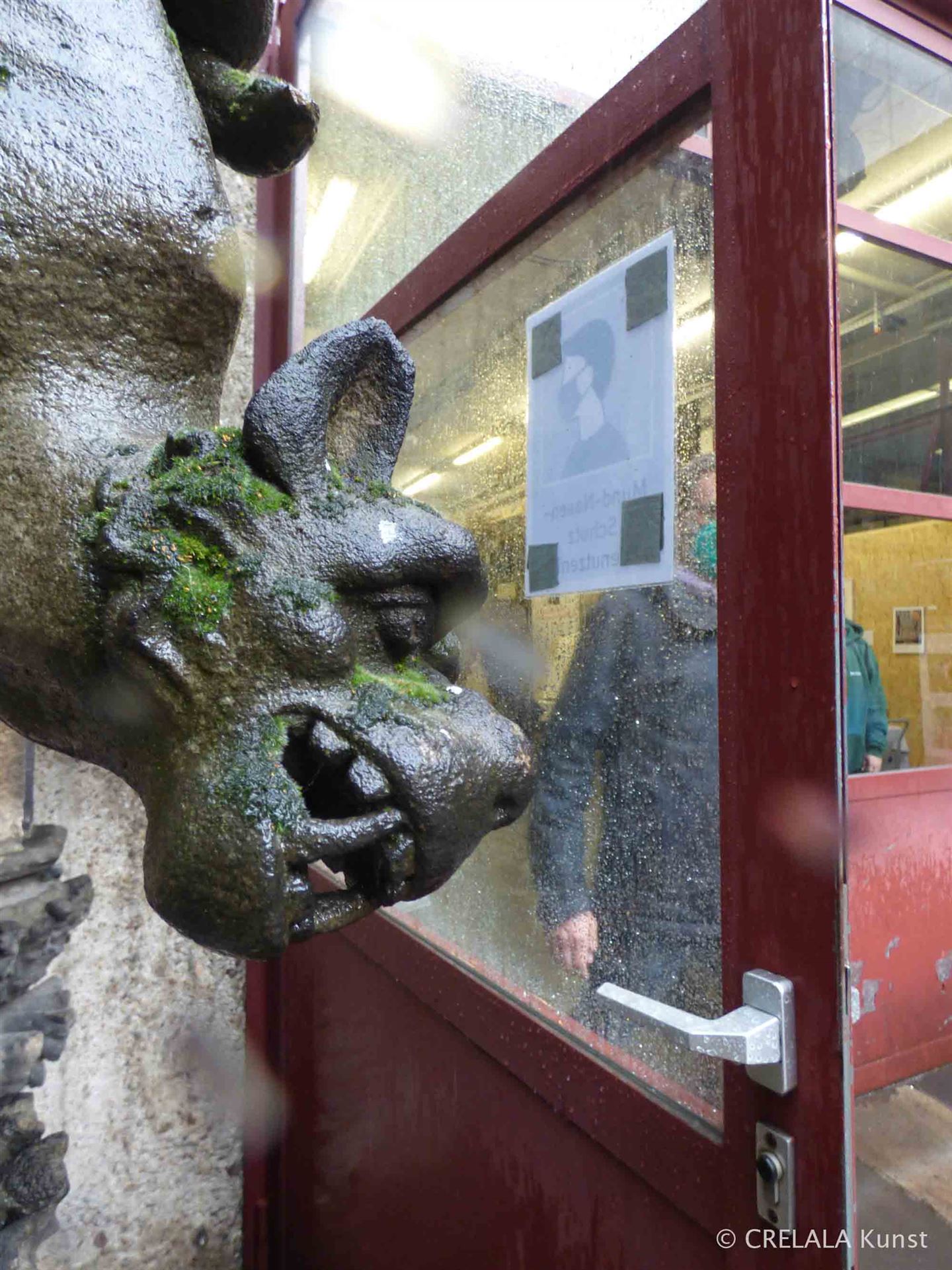 Die Pracht des Doms vergisst man in der Hütte. Es wird gearbeitet. Bzw. gezeigt und erklärt, wie gearbeitet wird. Monitore gibt es nur wenige. Aber es gibt sie natürlich auch hier. Monitore, an denen Modelle der zu restaurierenden, oder zu erneuernden Steinmetzarbeiten dreidimensional im Raum gedreht werden könnten. Vorlagen für Gussformen für Gipsmodelle, nach Abdrücken des Originals. Die alten Methoden, die antiquiert anmuten, werden gezeigt, und man begibt sich auf eine Zeitreise in die Vergangenheit. Von den Anfängen des Dombaus, bis zur Gegenwart. Man lernt alte Werkzeuge und Arbeits-Utensilien der Handwerker kennen und vergisst für einen Moment zu welchem Zweck der Stein behauen, das Holz gesägt, das Glas geschnitten, das Eisen geschmiedet wird.