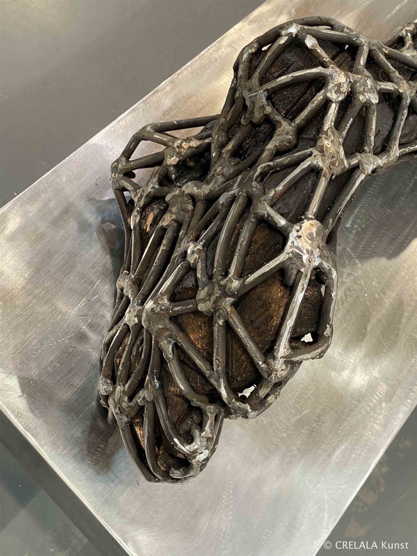Die Erde, ihre Schichten, die Analogien, die man erschaffen kann ist überall präsent, wie auch bei Patrizia Casagranda, die durch Lochbleche tropfen lässt, bis Gesichter entstehen. Positive, wie Negative bilden sich.