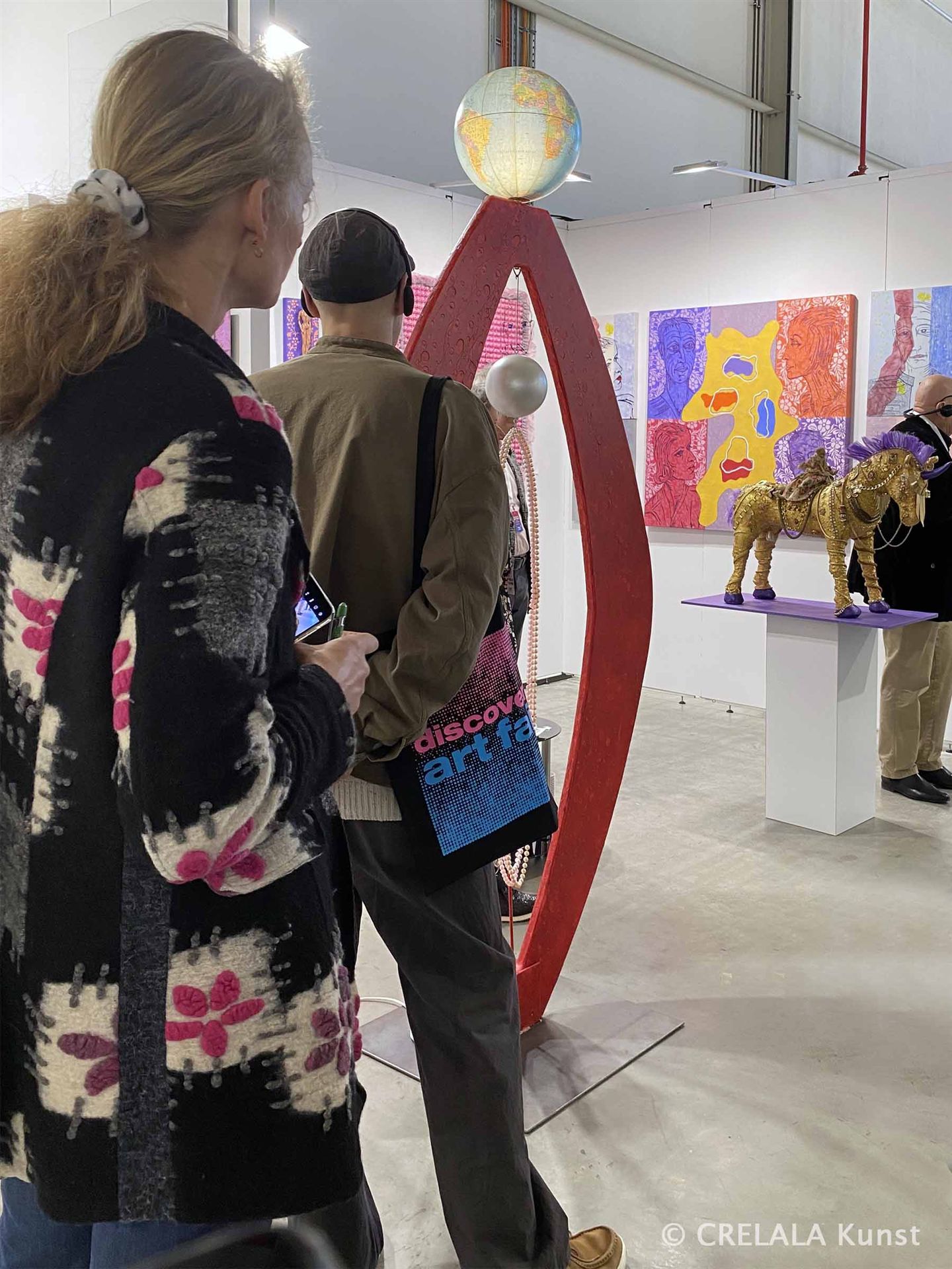 Was im Jahr 2025 auffällt: Es sind deutlich weniger internationale Positionen vertreten. Einige Stimmen behaupten die Kunst hätte sich weiter nach Süden verlagert. Die Art Karlsruhe wird als Zugpferd genannt. Karlsruhe, unweit Strasbourg, mit der Zweisprachigkeit zum romanischen Französisch, eine der etablierten UN-Sprachen, sind vielleicht der Grund für die Kunstverlagerung näher an die „Art Basel“ heran. Aber am Eröffnungsabend für geladenes Publikum zeigt sich, es kommen doch etliche Kunstinteressenten zur 2025er Ausgabe der daf.