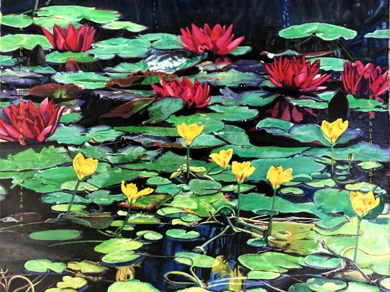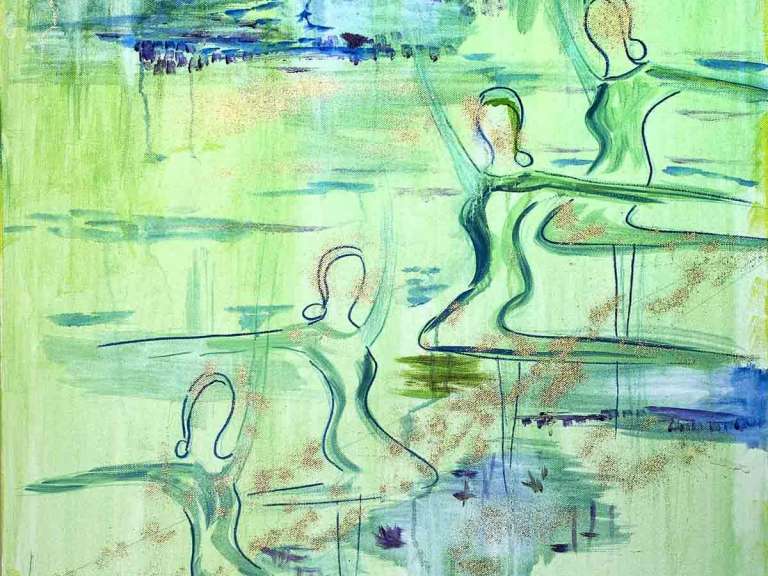 Sattes Grün Temperaturen, die an die Flüsse und Seen ziehen, strahlende Farben im Sonnenschein, die Kunst lockt nach draußen, auch im Sommer. Eintauchen, genießen und lächeln.