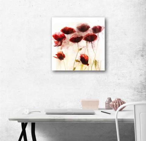 Die Fotografie "Im Eis-Mohn 1" wird als hochwertiger Druck unter Acrylglas angeboten. Das Außenmaß dieses digitalen Fotodrucks beträgt 39 cm x 39 cm.