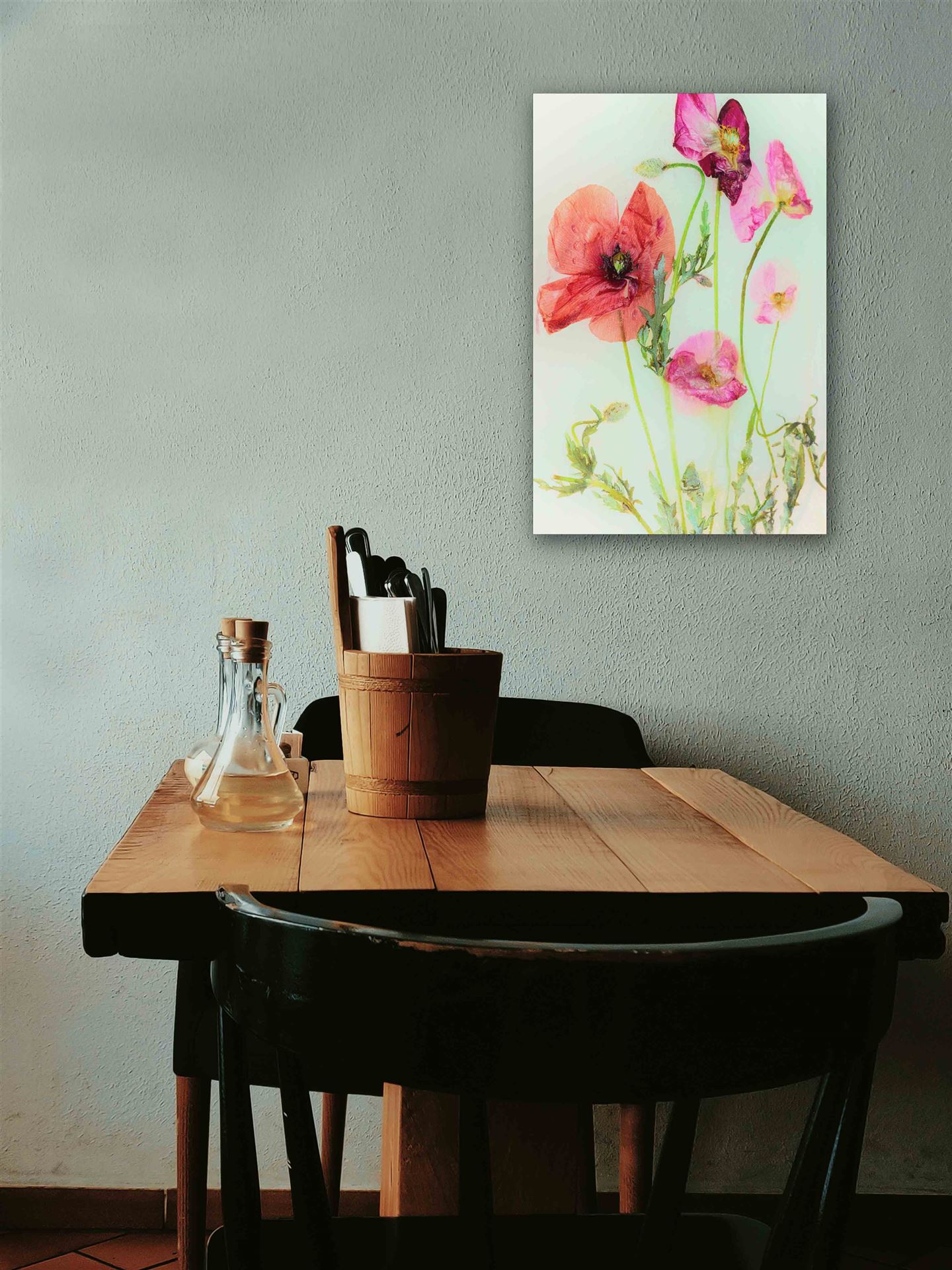 Die Fotografie "Im Eis-Mohn 5" wird als hochwertiger Druck unter Acrylglas angeboten. Das Außenmaß dieses digitalen Fotodrucks beträgt 66 cm x 42 cm.