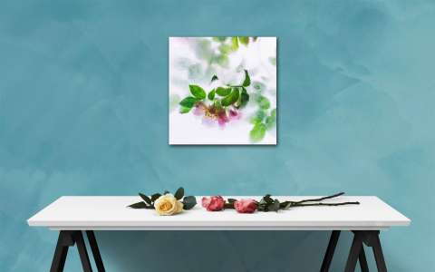 Die Fotografie "Im Eis-Rose" wird als hochwertiger Druck unter Acrylglas angeboten. Das Außenmaß dieses digitalen Fotodrucks beträgt 42 cm x 42 cm.