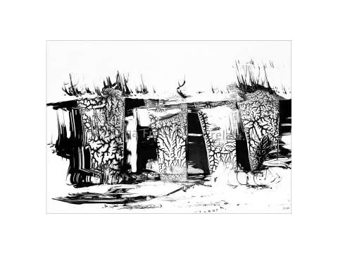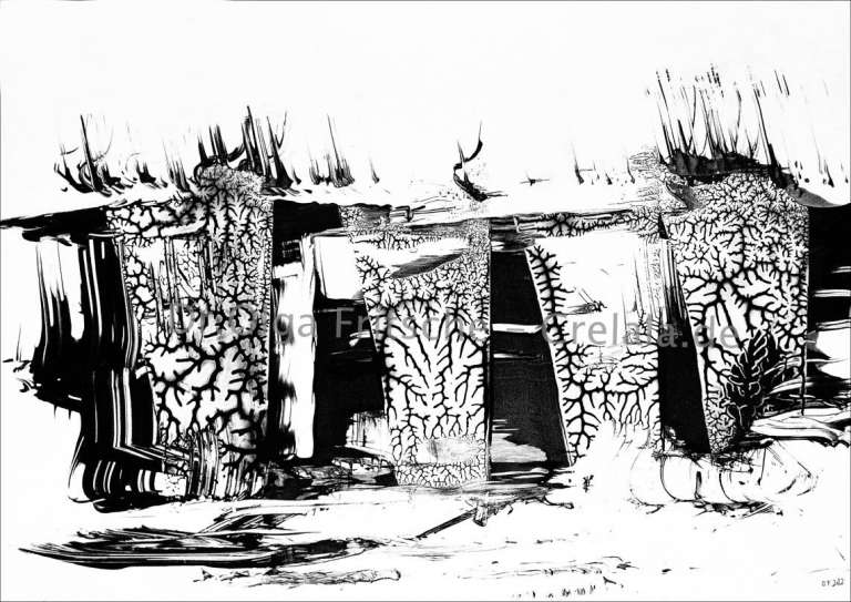 *Cliché verre ist eine halbfotografische, kameralose Methode. Das Motiv wird auf eine, mit schwarzer Farbe bedeckte Glasplatte als Negativ aufgetragen. Die Glasplatte wird danach auf ein lichtempfindliches Papier in der Dunkelkammer gelegt, belichtet und das Papier analog entwickelt. Durch diese Methode erhält man das Positiv des Bildes, die Fotografie.