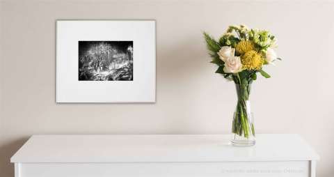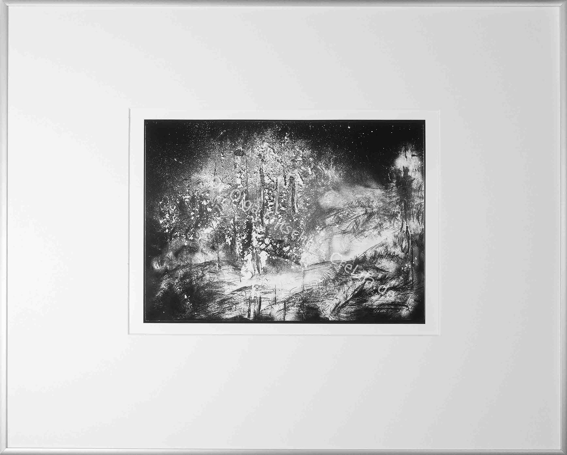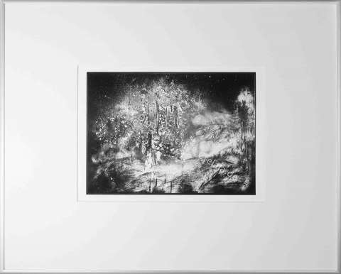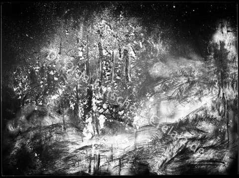 Das Kunstwerk "Sommernachtstraum" wurde nach der Methode des cliché verre/ mit Graphit* erstellt.