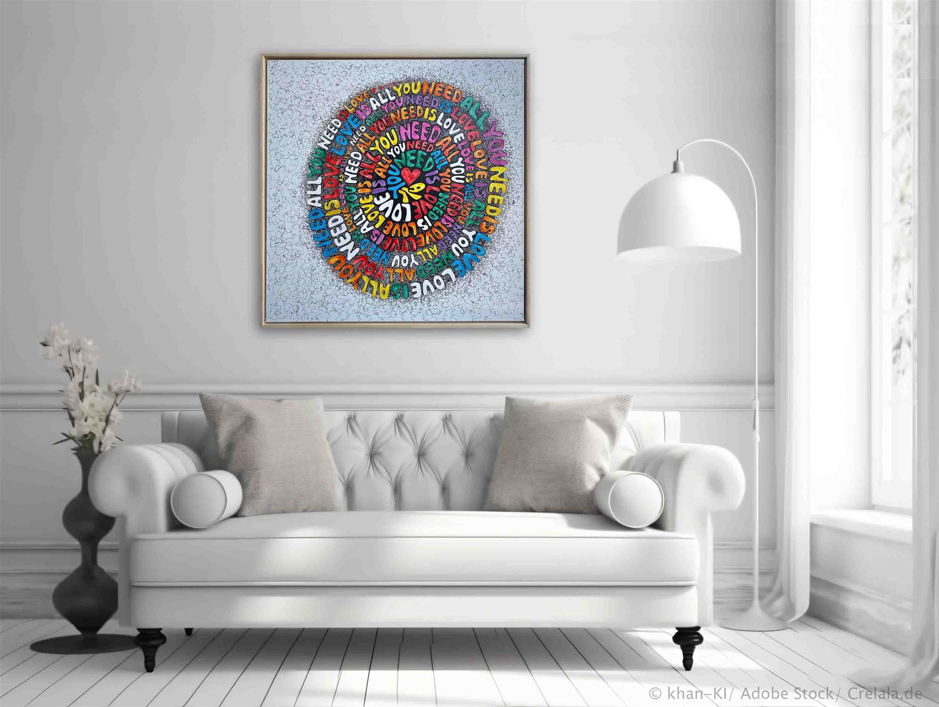 Kaufen Sie jetzt Acrylbilder bei CRELALA KUNST. "All you need is love" ein modernes Gemälde in Acryl auf Leinwand.
