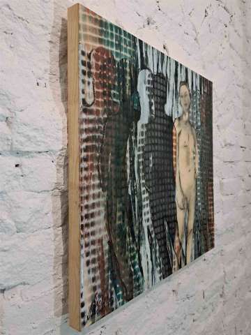 Das Kunstwerk "Alter Ego 1" wurde in Acryl auf Holz gemalt und mit Resin überarbeitet. Das Außenmaß des Kunstwerkes beträgt 60 cm x 60 cm x 3,5 cm.