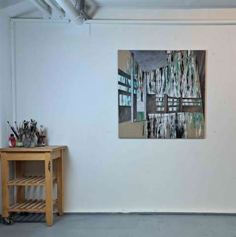 Kaufen Sie jetzt Acrylbilder bei CRELALA KUNST. "Der Brand, Mainz" ein modernes Gemälde in Acryl mit Mixed Media auf Leinwand von Astrid Eisinger.