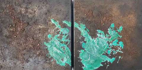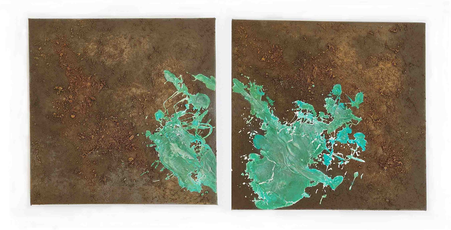 Das Kunstwerk "rust twins" wurde in Mixed Media und Acryl auf Leinwand gemalt. Das Außenmaß des Kunstwerkes beträgt 30 cm x 60 cm x 1,6 cm. Das Bild ist ein Diytychon und besteht aus 2 separaten Bildern, die zusammen ein Gesamtkunstwerk ergeben. Die Außenmaße der einzelnen Werke betragen 30 cm x 30 cm x 1,6.