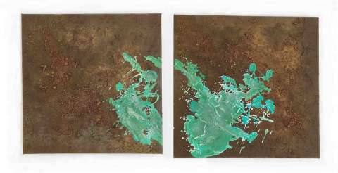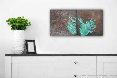 Kaufen Sie jetzt Acrylbilder bei CRELALA KUNST. "Rust twins" ein modernes Gemälde (Diptychon) in Mixed Media und Acryl auf Leinwand von Susanne Maul.