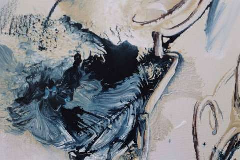 Das Kunstwerk "Abstrakte performance ll" wurde in Acryl und Fineliner auf Leinwand gemalt. Das Gemälde wird gerahmt angeboten und hat ein Außenmaß von 50 cm x 40 cm x 2 cm.