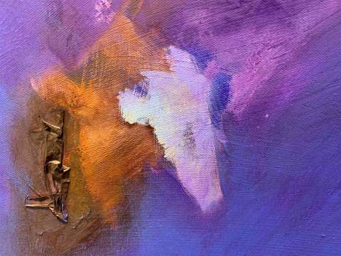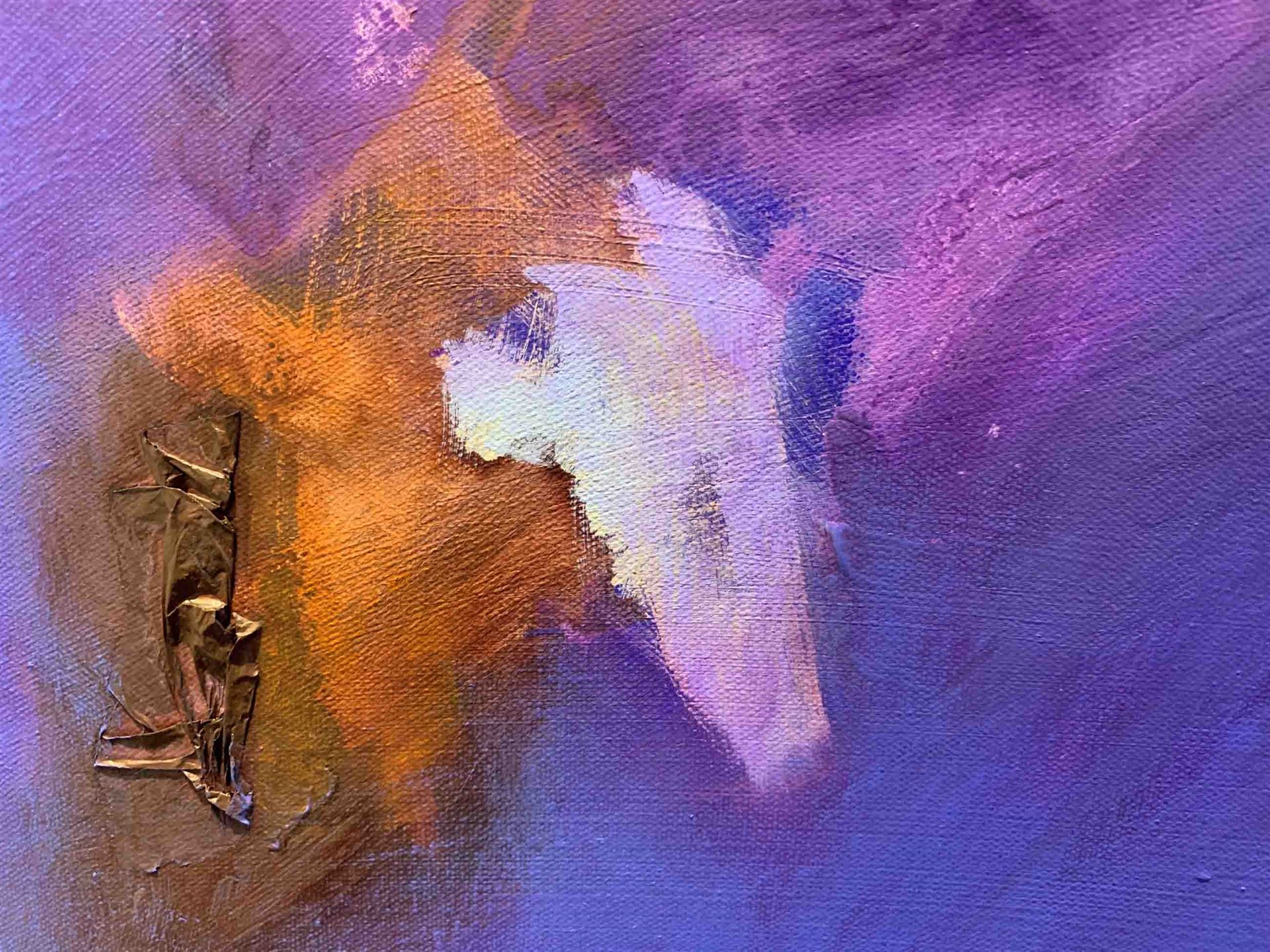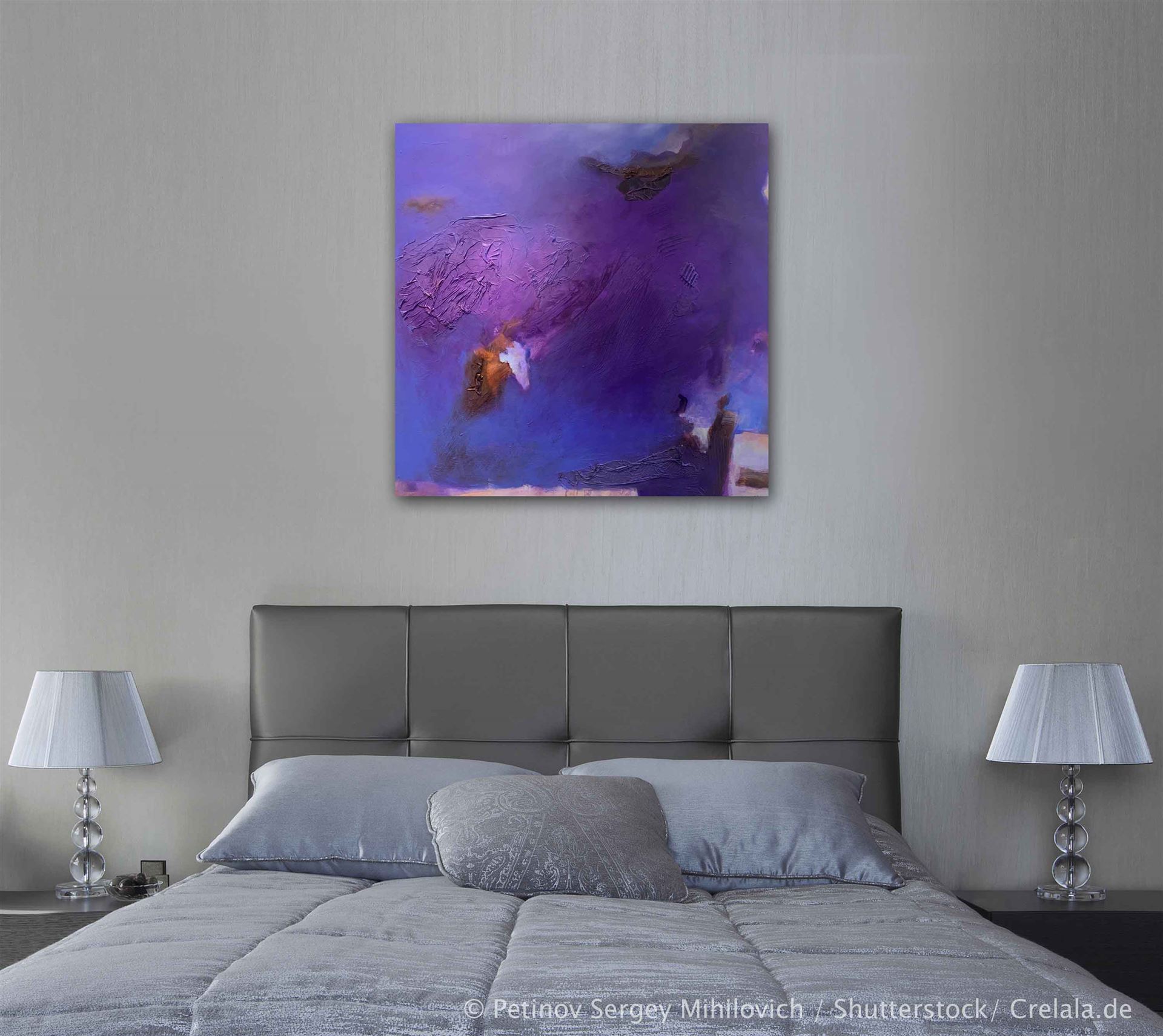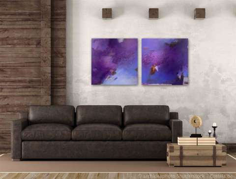Die Gemälde "Purple Rain" und "Sie lächelt" lassen sich wunderbar kombinieren und als Ensemble aufhängen, siehe Beispielbild. Das Werk "Sie lächelt" ist in diesem Angebot nicht enthalten.