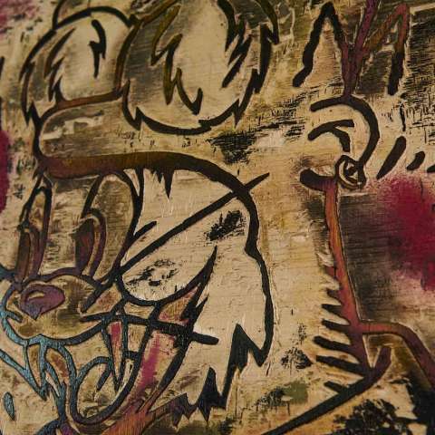 Bestellen Sie jetzt Malerei im Onlineshop CRELALA KUNST. "Fake" als Cartoon Art Holzschnitt im verlorenen Schnitt.