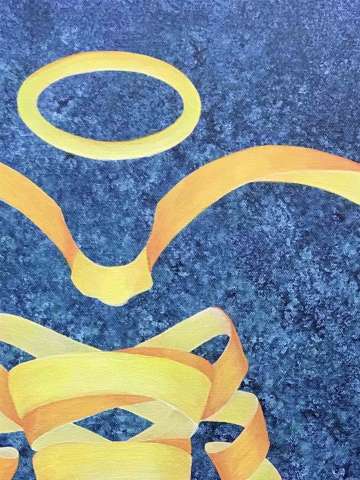Das Kunstwerk "erleuchtet" wurde in Acryl auf Leinwand gemalt. Das Außenmaß des Kunstwerkes beträgt 80 cm x 100 cm x 2 cm.