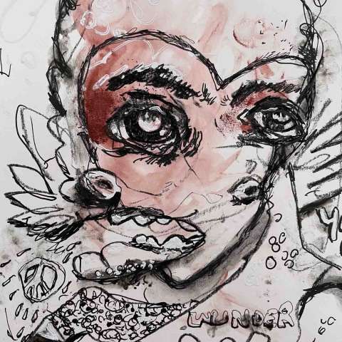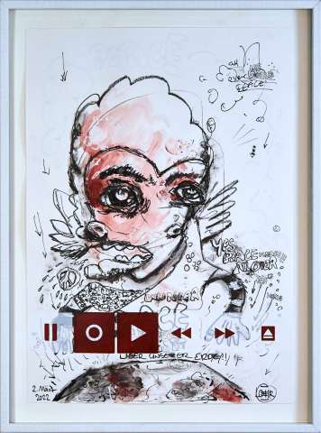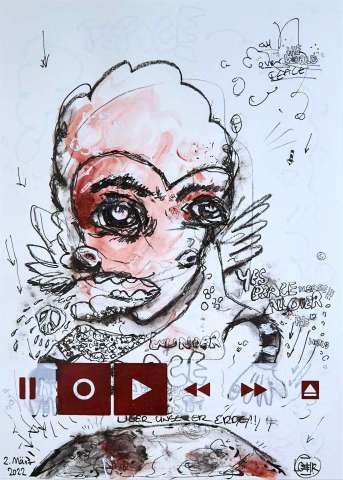 Kaufen Sie jetzt Malerei online bei CRELALA KUNST. "Friedensgeist" ein modernes Mixed-Media Bild aus der 16tlg. Serie Record & Play von Ralf Löhr.