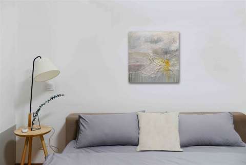 Das Kunstwerk "Reduziert 1" wurde in Mixed Media auf Leinwand gemalt. Das Außenmaß dieses Unikates beträgt 50 cm x 50 cm x 3,5 cm. Das Unikat kann aber auch im Ensemble mit Reduziert 2 gekauft werden.