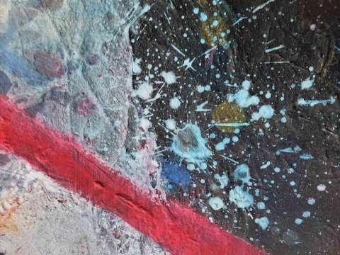 Das Kunstwerk "Splash" wurde in Acryl auf Leinwand gemalt. Das Außenmaß dieses Unikates beträgt 60 cm x 60 cm x 2 cm.