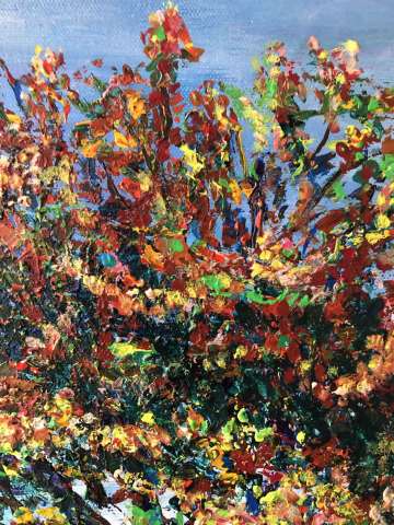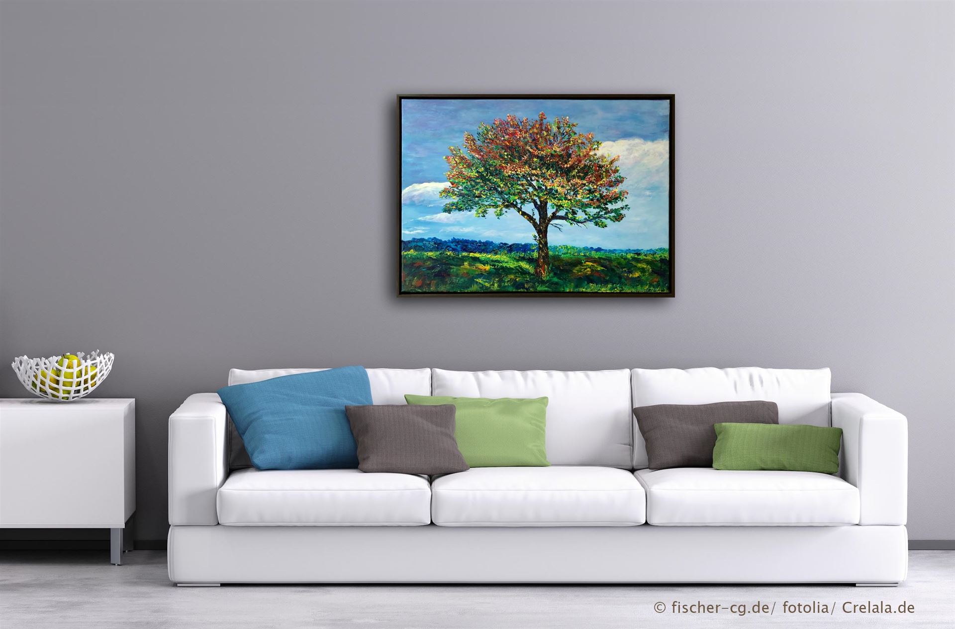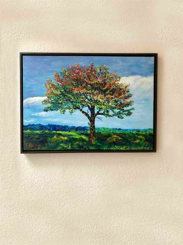 Das Kunstwerk "Lebensbaum" wurde in Acryl auf Leinwand gemalt. Das Unikat wird gerahmt zum Verkauf angeboten. Das Außenmaß dieses Unikates beträgt 50 cm x 70 cm x 40 cm und gerahmt 53 cm x 73 cm x 4 cm.