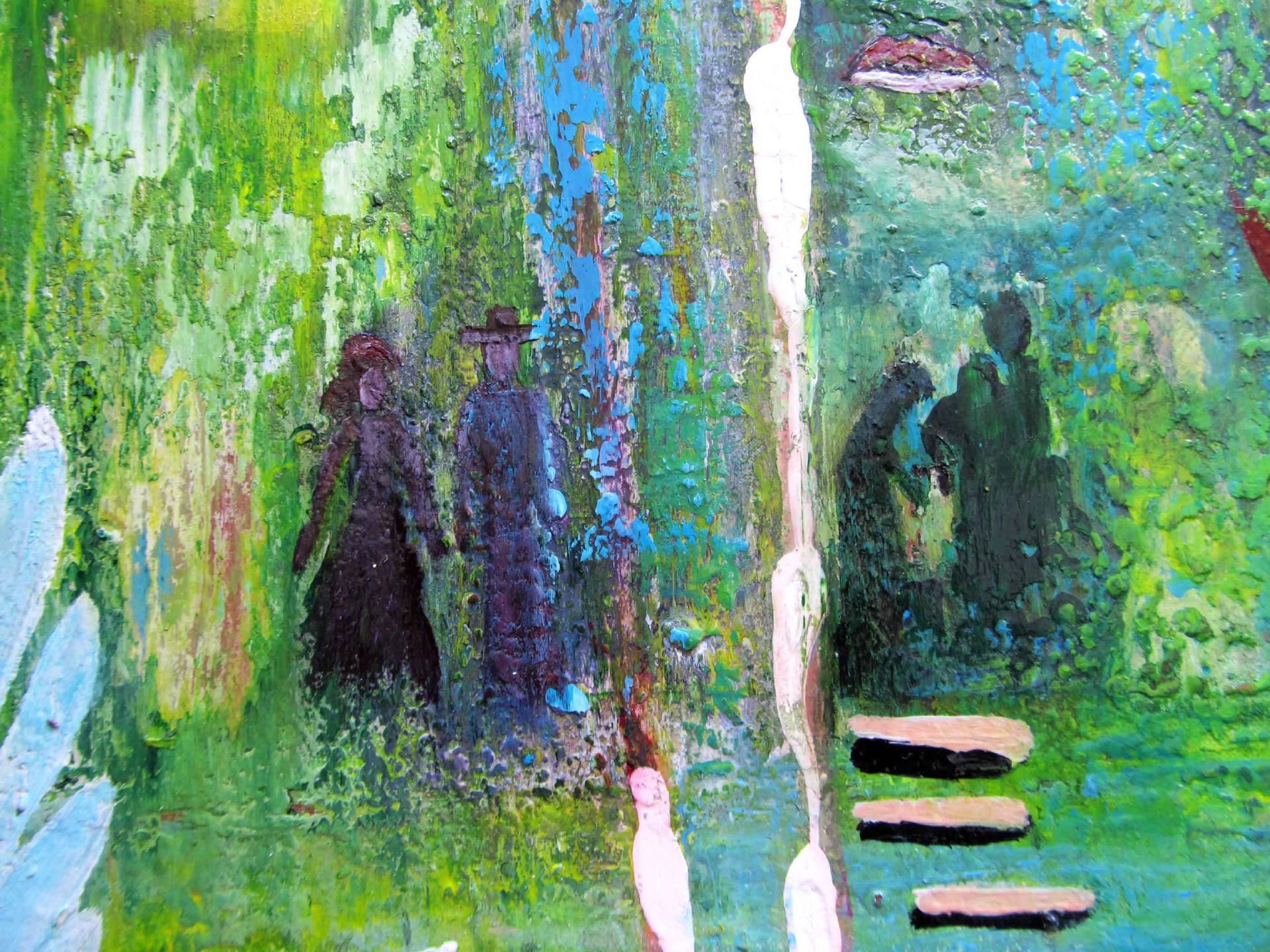 Das Kunstwerk "Geisterwald" wurde in Acryl mit Mischtechnik gespachtelt auf Leinwand gemalt. Die Rückseite wurde mit weißer Farbe gespachtelt. Das Außenmaß dieses Unikates beträgt 48 cm x 36 cm.