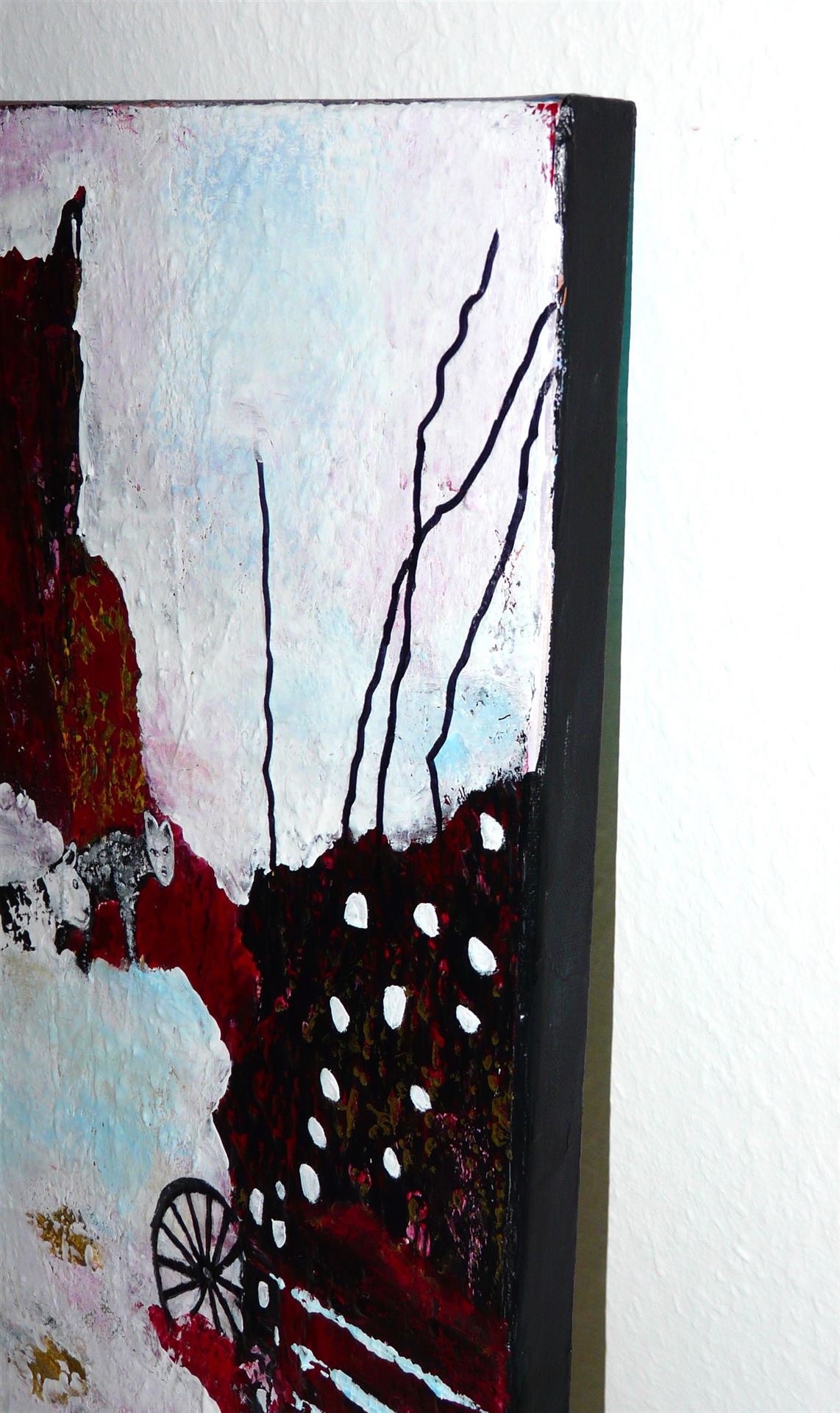 Das Kunstwerk "Schatzsucher" wurde in Acryl mit Strukturpaste auf Leinwand gemalt. Das Außenmaß dieses Unikates beträgt 50 cm x 30 cm x 2 cm.