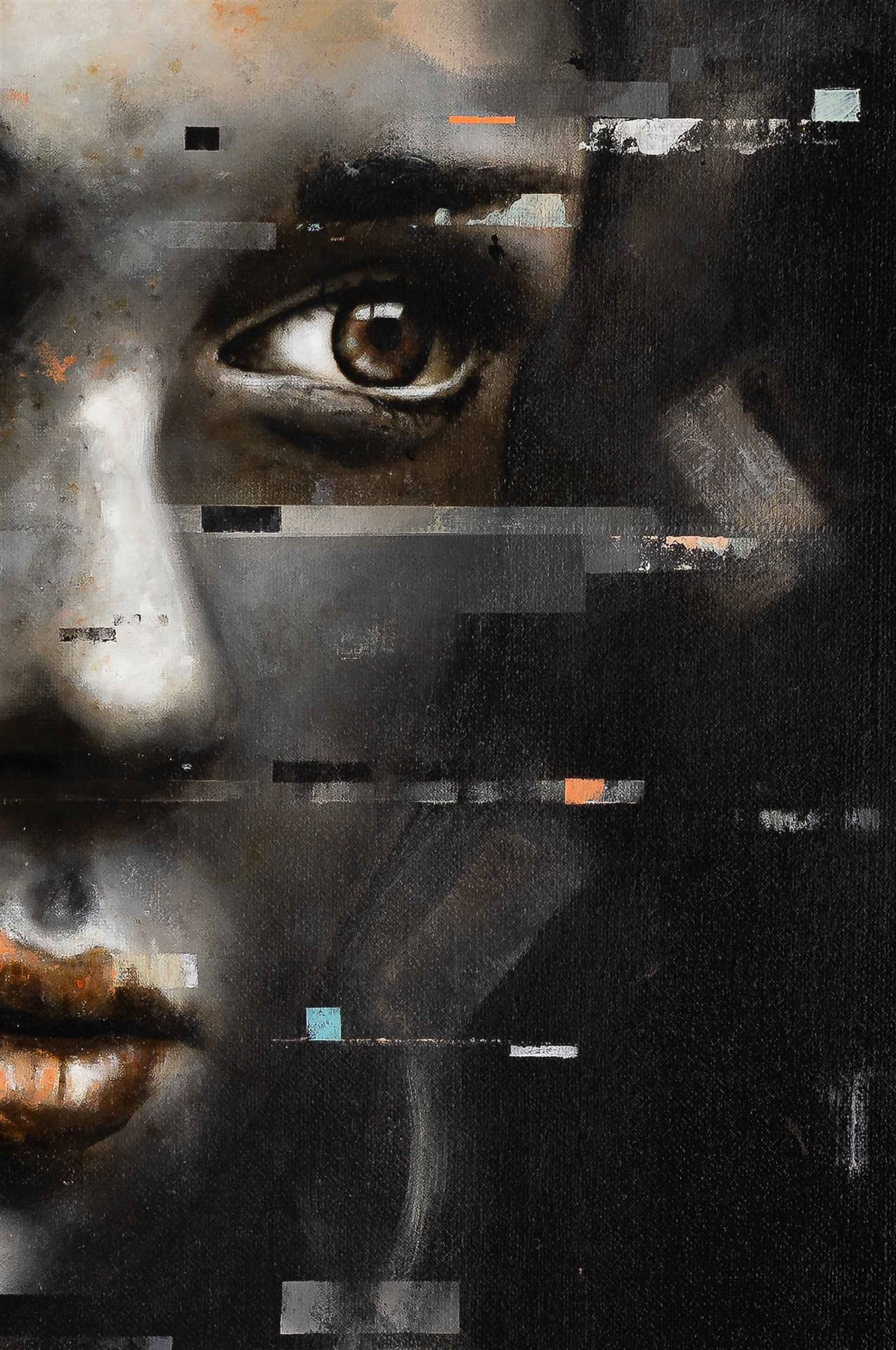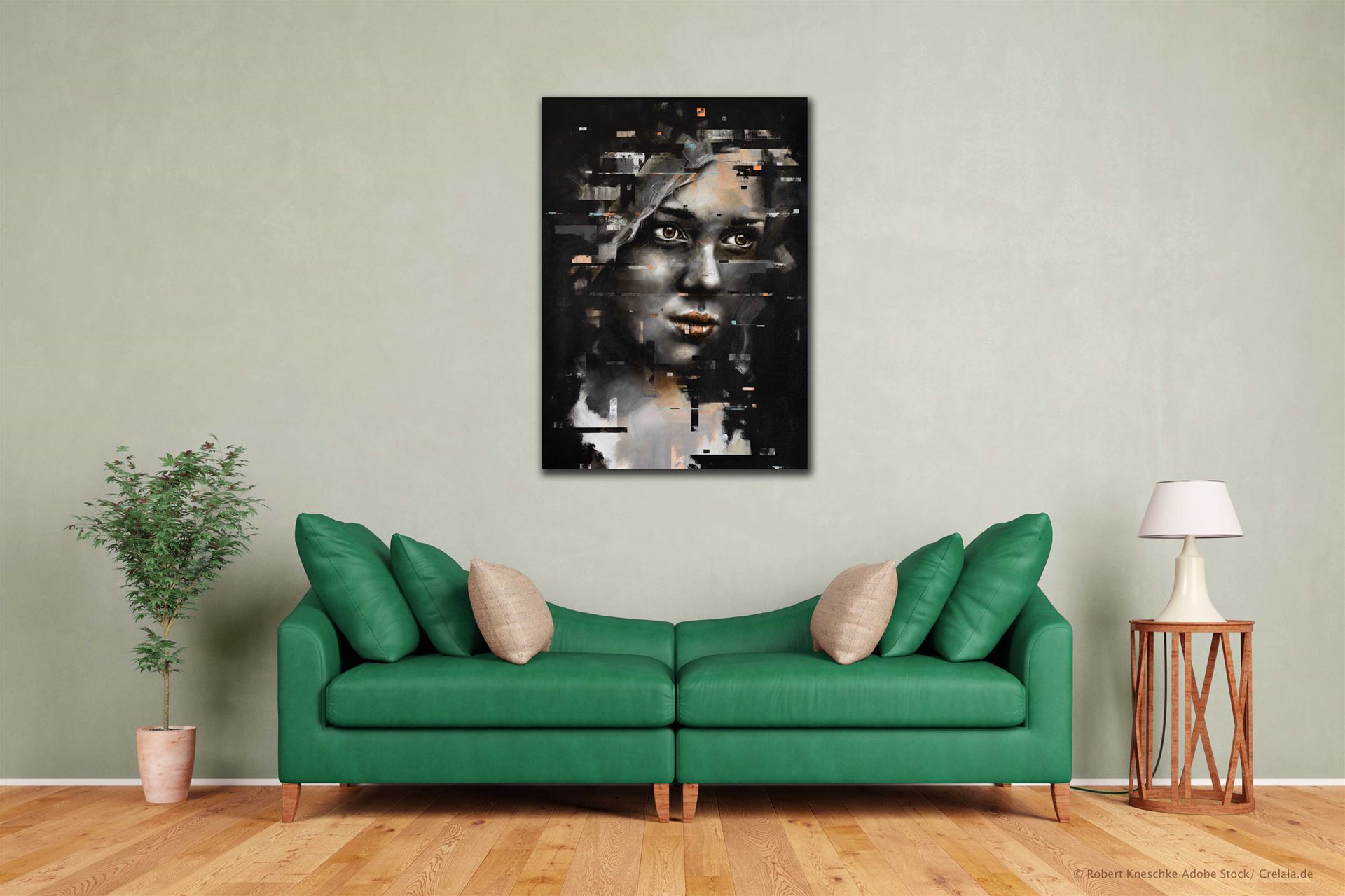 Das Kunstwerk "Portrait 1" wurde in Acryl auf Leinwand gemalt. Das Außenmaß dieses Unikates beträgt 140 cm x 100 cm x 5 cm.