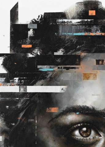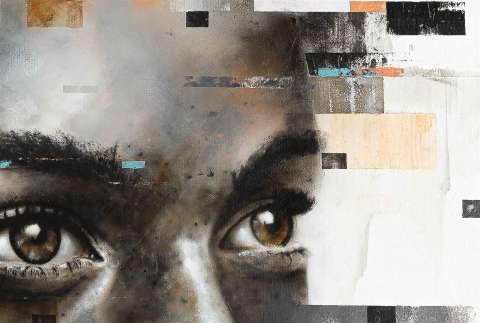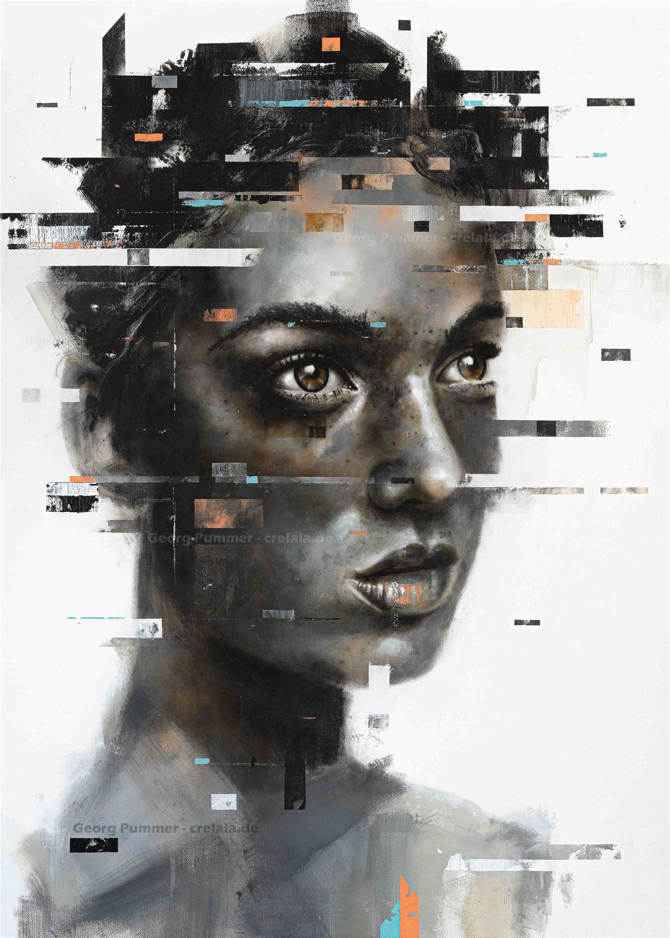 Das Kunstwerk "Portrait 2" wurde in Acryl auf Leinwand gemalt. Das Außenmaß dieses Unikates beträgt 140 cm x 100 cm x 5 cm.