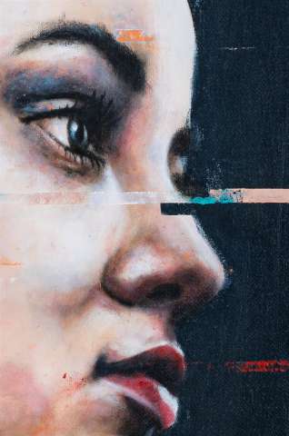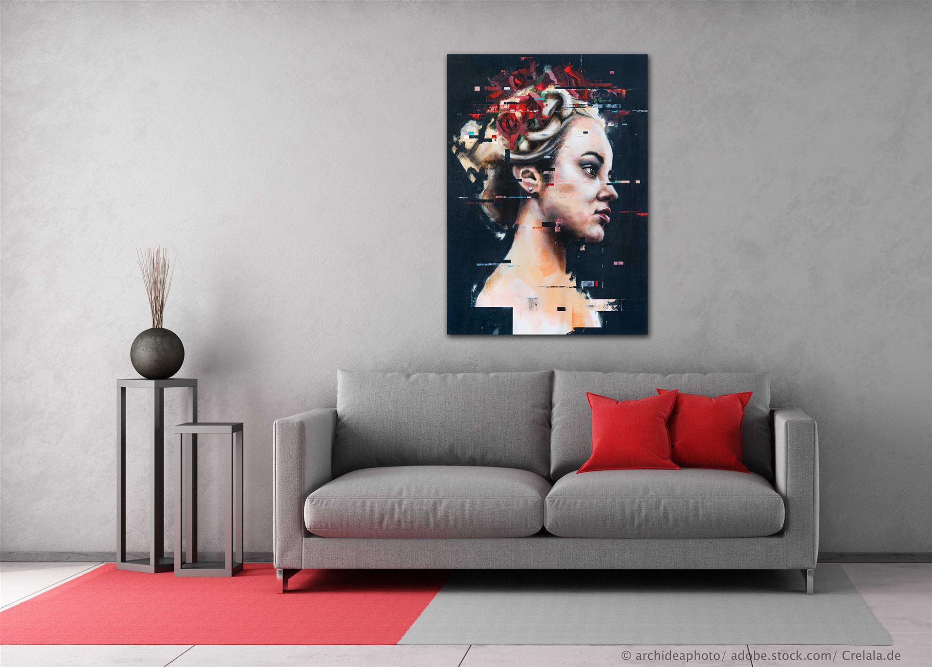Das Kunstwerk "Portrait 6" wurde in Acryl auf Leinwand gemalt. Das Außenmaß dieses Unikates beträgt 140 cm x 100 cm x 5 cm.
