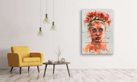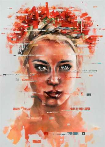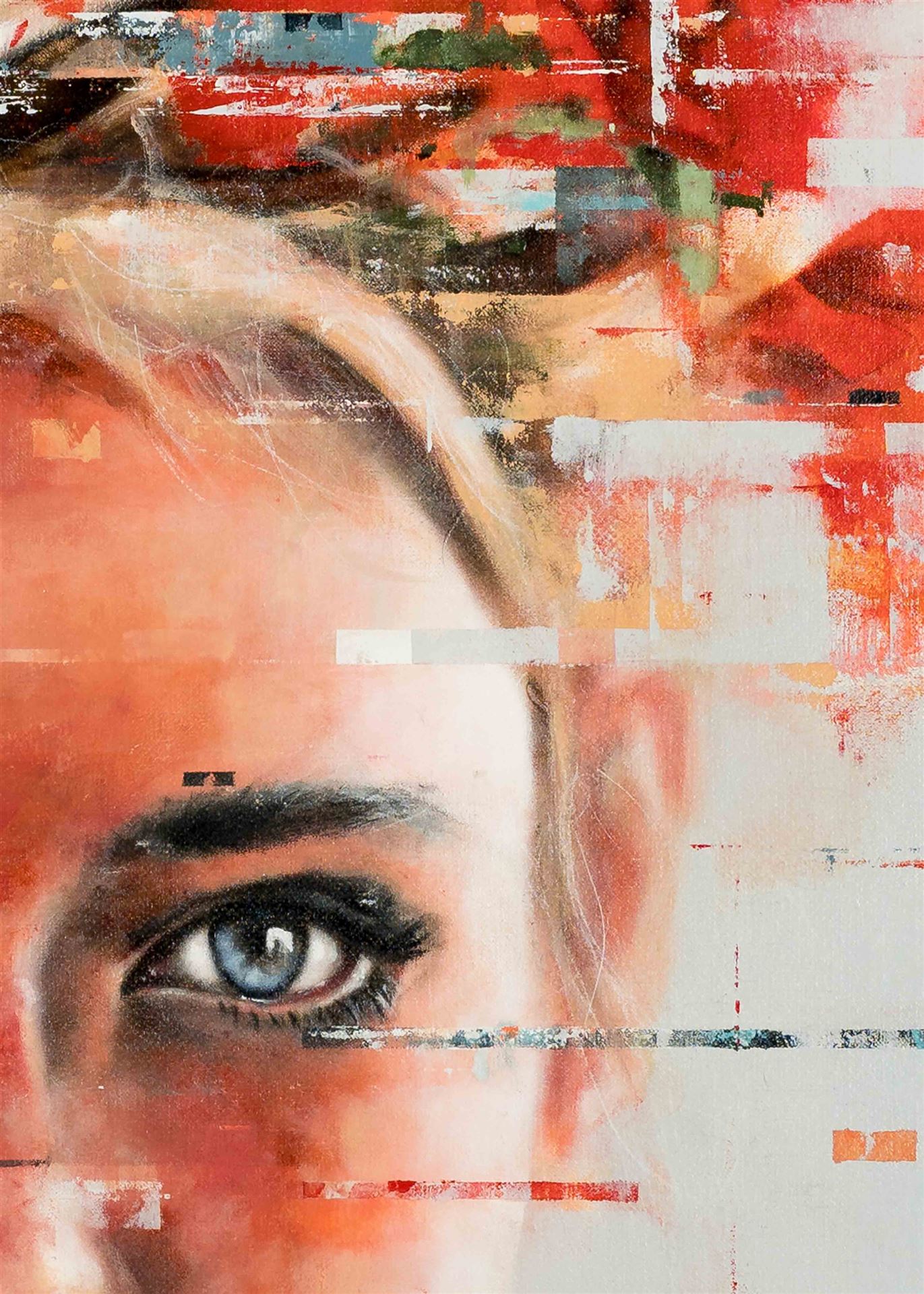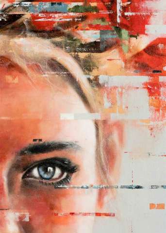 Das Kunstwerk "Portrait 8" wurde in Acryl auf Leinwand gemalt. Das Außenmaß dieses Unikates beträgt 140 cm x 100 cm x 5 cm.