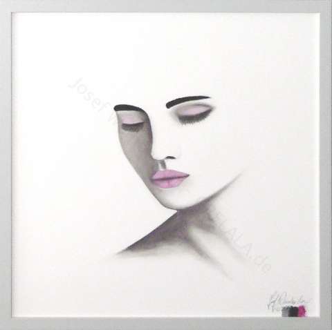 Das Kunstwerk "FONDU AU GRIS magenta" wurde in Ölkreide auf Karton gemalt. Das Unikat wird gerahmt (grau lackierter Holzrahmen) zum Verkauf angeboten. Das Außenmaß dieses Unikates beträgt 52,5 cm x 52,5 cm x 3 cm.