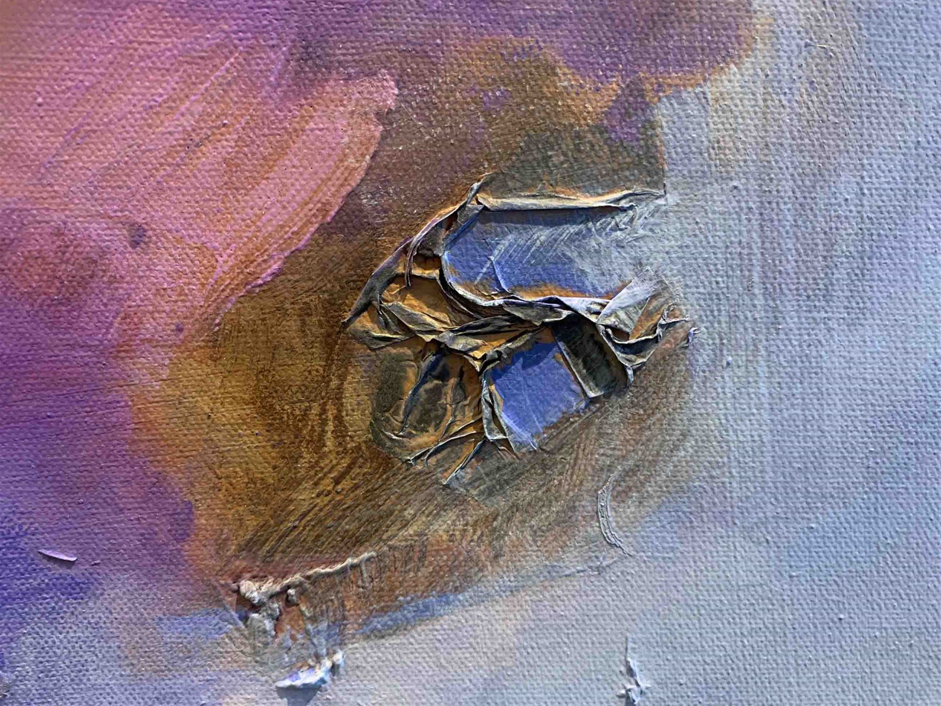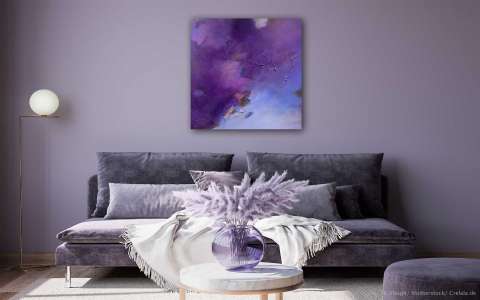 Die Gemälde "Sie lächelt" und "Purple Rain" lassen sich wunderbar kombinieren und als Ensemble aufhängen, siehe Beispielbild. Das Werk "Purple Rain" ist in diesem Angebot nicht enthalten.