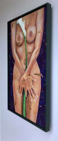 Das Kunstwerk "Schönheitswahn. Was bleibt…?" wurde in Acryl und Mixed Media auf Leinwand gemalt. Das Unikat wird mit Rahmen (Schattenfugenrahmen) zum Verkauf angeboten. Das Außenmaß dieses Unikates beträgt 60 cm x 100 cm x 4 cm mit Rahmen 64 cm x 104 cm x 5 cm .