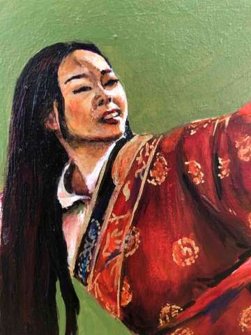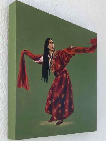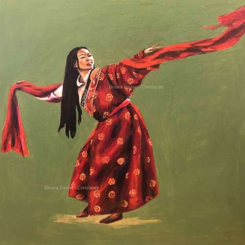 Kaufen Sie jetzt Malerei online bei CRELALA KUNST. "Tibetischer Tanz I" ein figuratives, modernes Gemälde in Acryl auf Leinwand von Dinara Daniel.