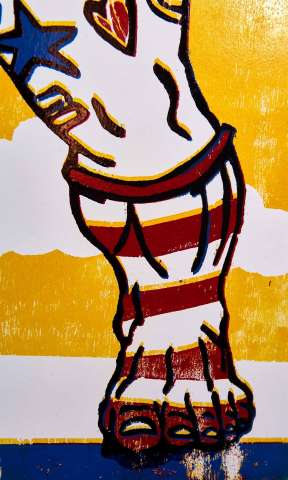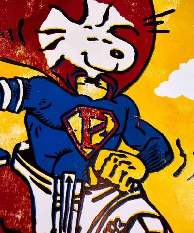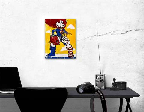 Kaufen Sie jetzt Malerei online bei CRELALA KUNST. "The four peace fighter" als Cartoon Art Holzschnitt im verlorenen Schnitt.