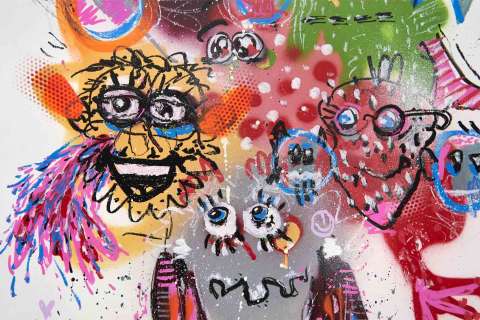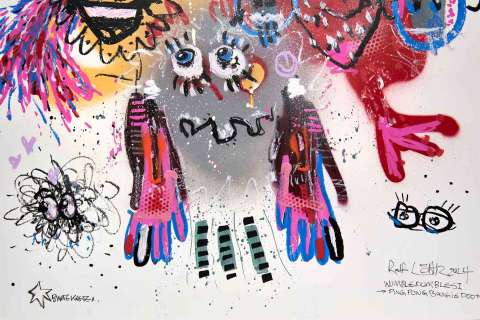Kaufen Sie jetzt Acrylbilder bei CRELALA KUNST. "Bunte Knete l" ein modernes Street Art Gemälde in Acryl und Mixed Media auf Papier.