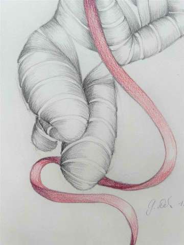 Kaufen Sie jetzt Malerei online bei CRELALA KUNST. "O.T. 1" ein modernes Gemälde in Bleistift und Buntstift auf Papier von Gudrun Dorsch.