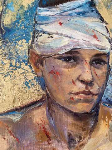 Kaufen Sie jetzt Malerei online bei CRELALA KUNST. "Ukrainische Madonna" ein modernes, zeitgenössisches Ölbild von Olga Adamus.
