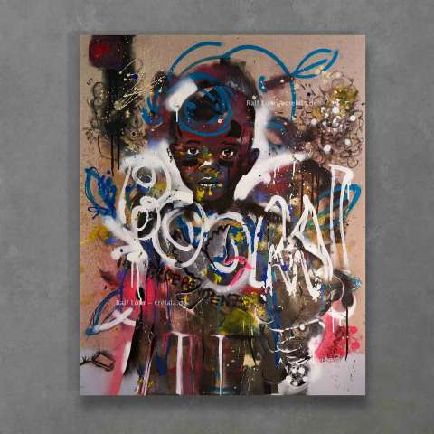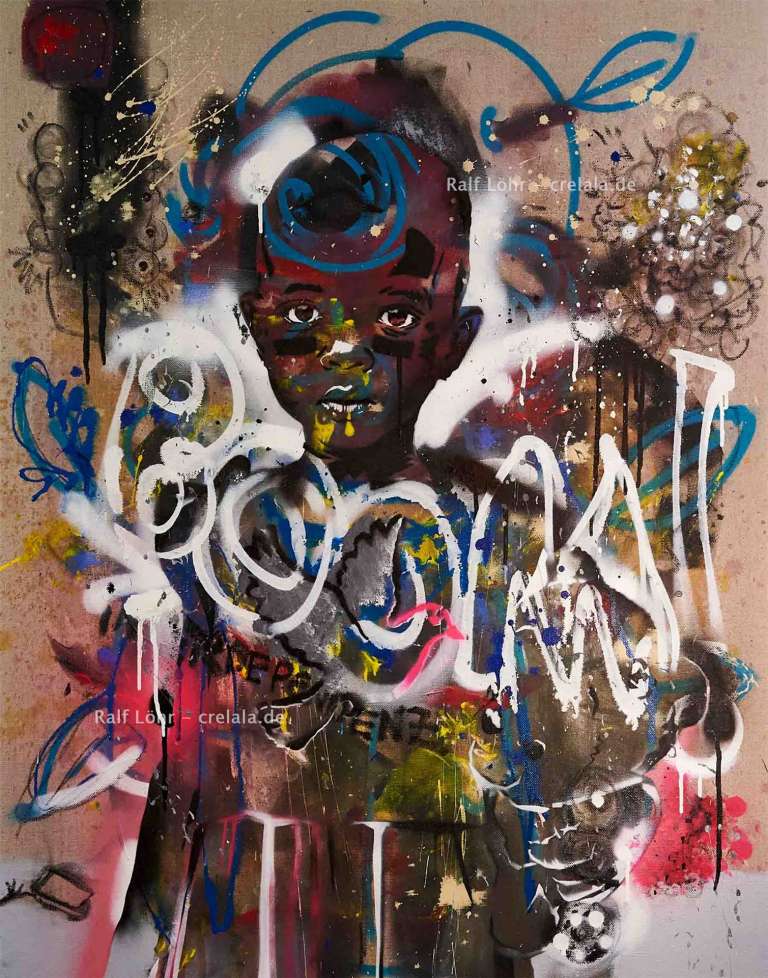 Kaufen Sie jetzt Malerei online bei CRELALA KUNST. "War child" ein zeitgenössisches, modernes Mixed-Mediabild von Ralf Löhr.