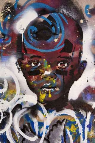 Das Kunstwerk "war child" wurde in Mixed Media auf Leinwand gemalt. Das Außenmaß dieses Unikates beträgt 100 cm x 80 cm x 4,5 cm.