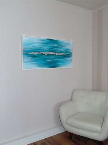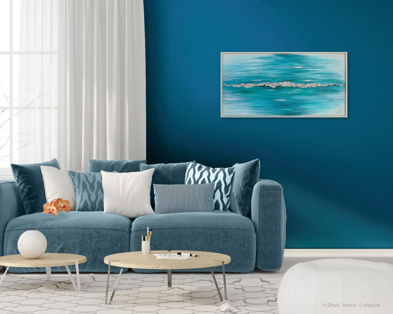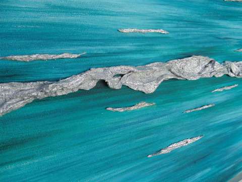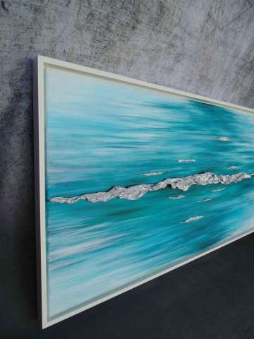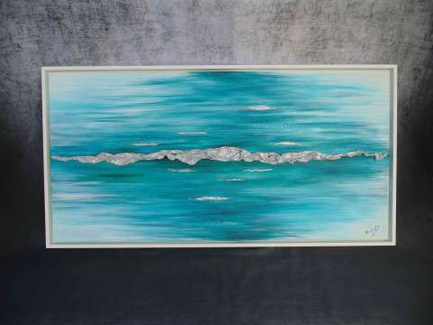 Der Horizont "lebt" - auf vibrierend, changierendem Türkis kommt der Horizont auf den Betrachter zu.