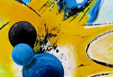 Das Kunstwerk "Lichtquelle" wurde in Acryl auf Leinwand gemalt. Das Außenmaß dieses Unikates beträgt 90 cm x 90 cm x 3 cm.