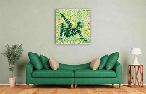 Das Kunstwerk "durstig" wurde in Acryl auf Leinwand gemalt. Das Außenmaß des Kunstwerkes beträgt 100 cm x 100 cm x 2 cm.