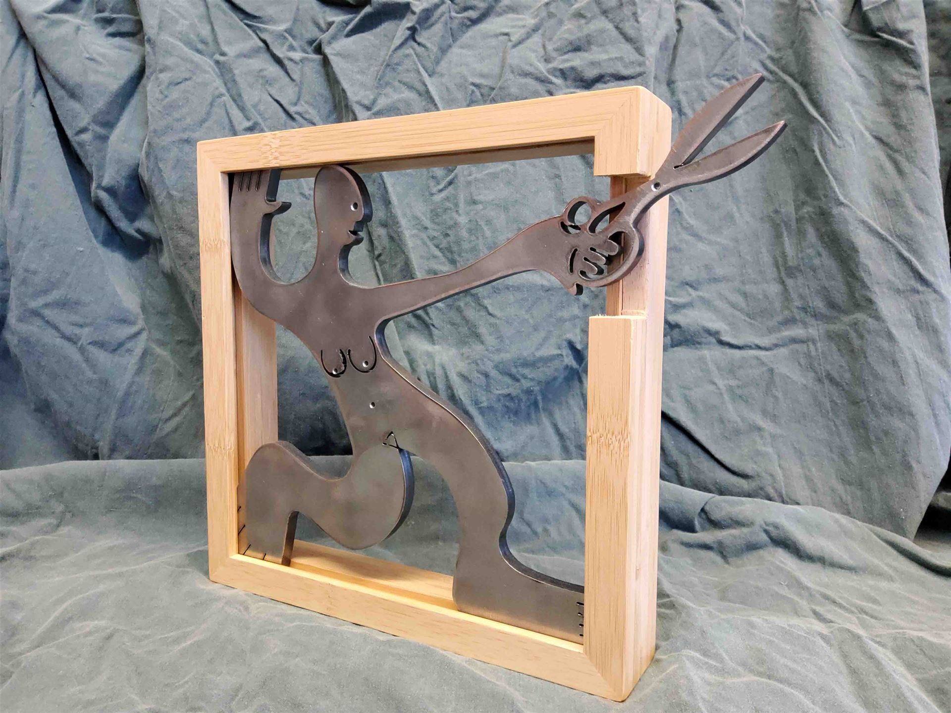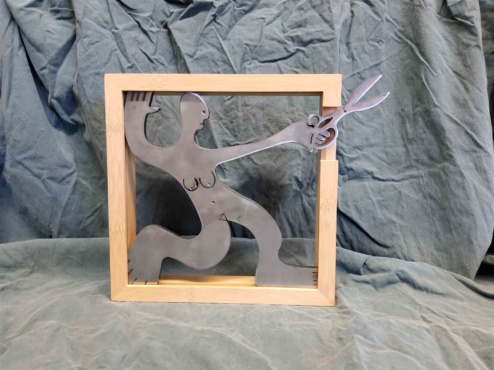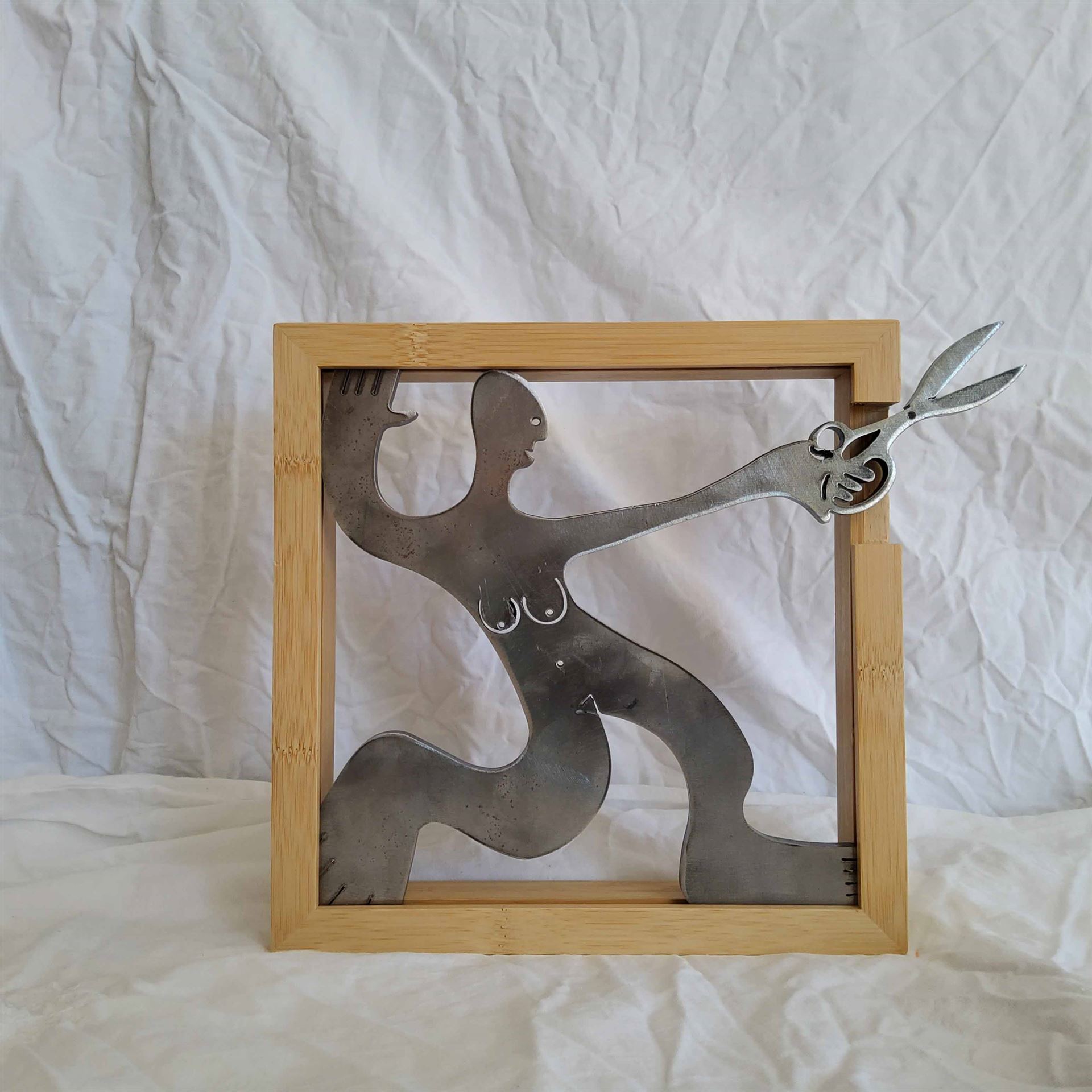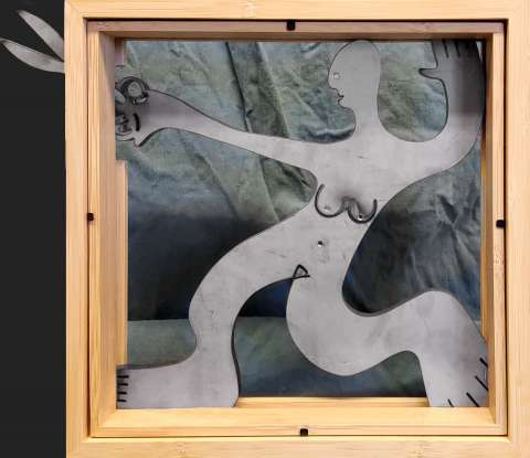 Das Kunstwerk "Weiblich Phase 3" ist ein Stahlbild aus Cortenstahl mit Bambusrahmen. Das Außenmaß dieses Kunstwerkes beträgt 25 cm x 25 cm x 4,5 cm. Das Kunstwerk wird mit Rahmen zum Verkauf angeboten. Das Stahlbild hat eine limitierte Gesamtauflage von 11 Stück.