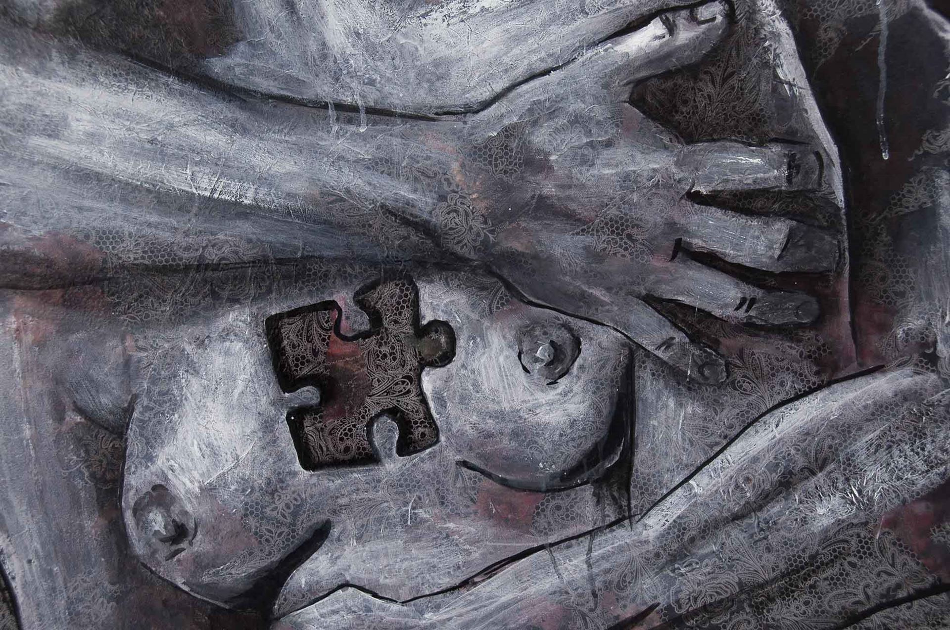 Das Kunstwerk "A Love Story" wurde in Mischtechnik auf Leinwand gemalt. Das Außenmaß dieses Unikates beträgt 116 cm x 89 cm x 2 cm.