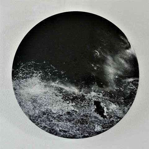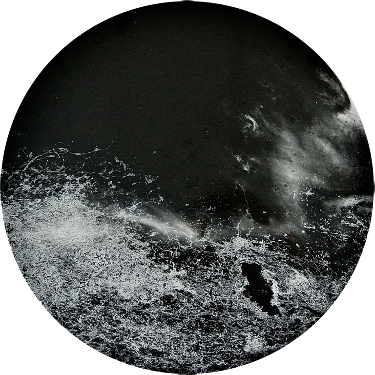 Das Kunstwerk "O.T.11" wurde mit Resin auf Holzmalgrund gemalt. Der Durchmesser dieses runden Kunstwerkes beträgt 50 cm und hat eine Tiefe von x 2 cm.